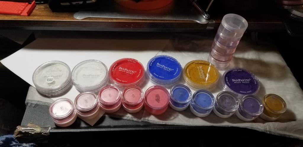 Before anyone goes out to get them, PLEASE NOTE that some artists like Sue-Ellen Taormina don’t like Panpastels and prefer highly pigmented makeup like Coastal Scents (out of business, but still available on ebay.) or Kryolan (they make makeup for movies and such). HOWEVER, and artist I know told me about Pan Pastels prior to finding out that they are frowned upon by some.