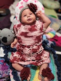 Well, this year has been momentous! I stepped up and entered one of my Reborn Babies in the District fair. It wasn’t because I was trying to get business, it was actually for my own mental health. I always think that my babies are just not that good…..so this year I decided to enter one of the babies, Dannie (Dream by Elizabeth Townsley LE of 200). My daughter was wonderful enough to make her outfit, a beautiful red and pink dress, diaper cover, headband and sandles! Taking her to the fair last Sunday was nerve wracking…..I was sure no one would like her. Well, I was wrong.