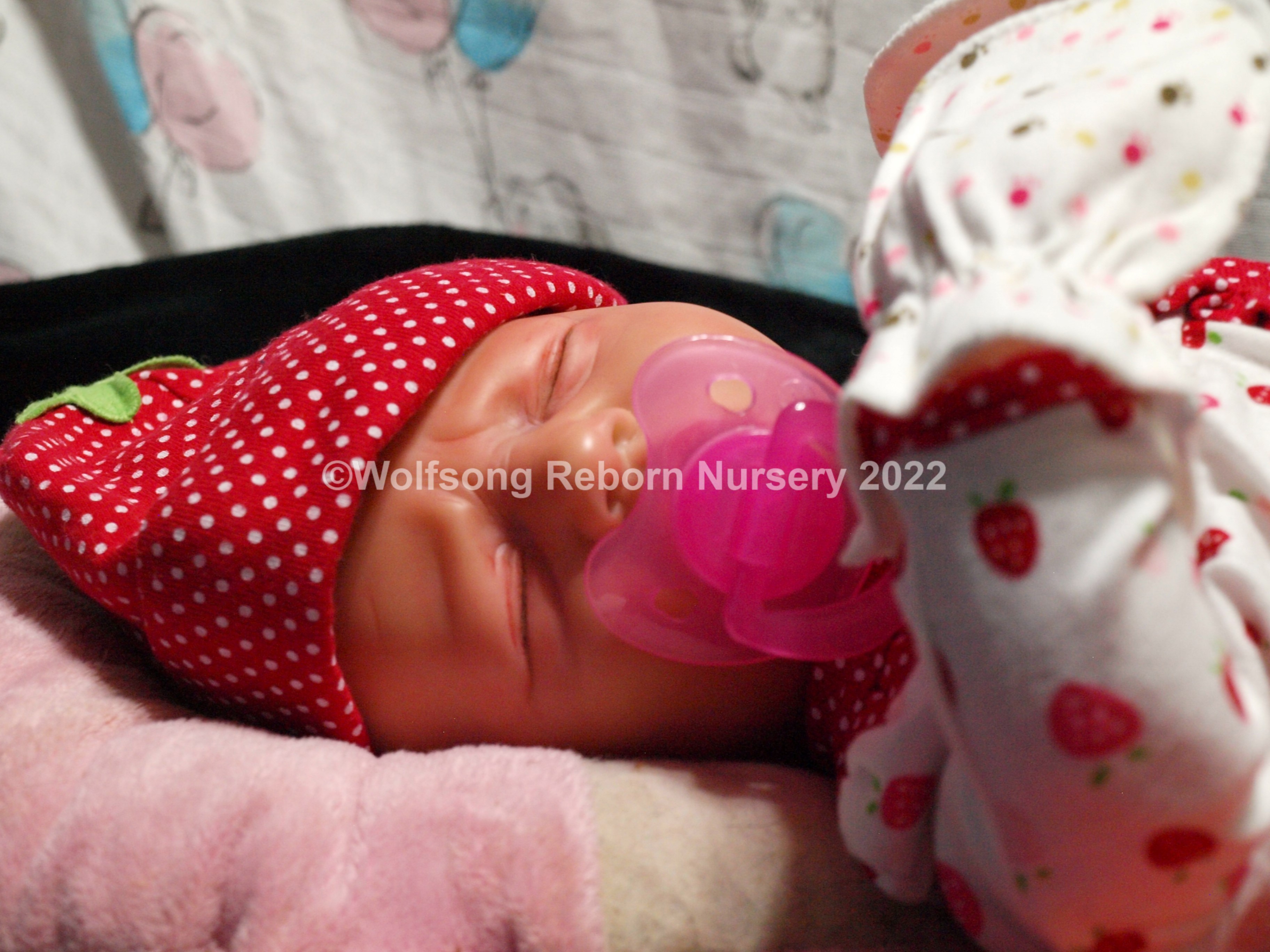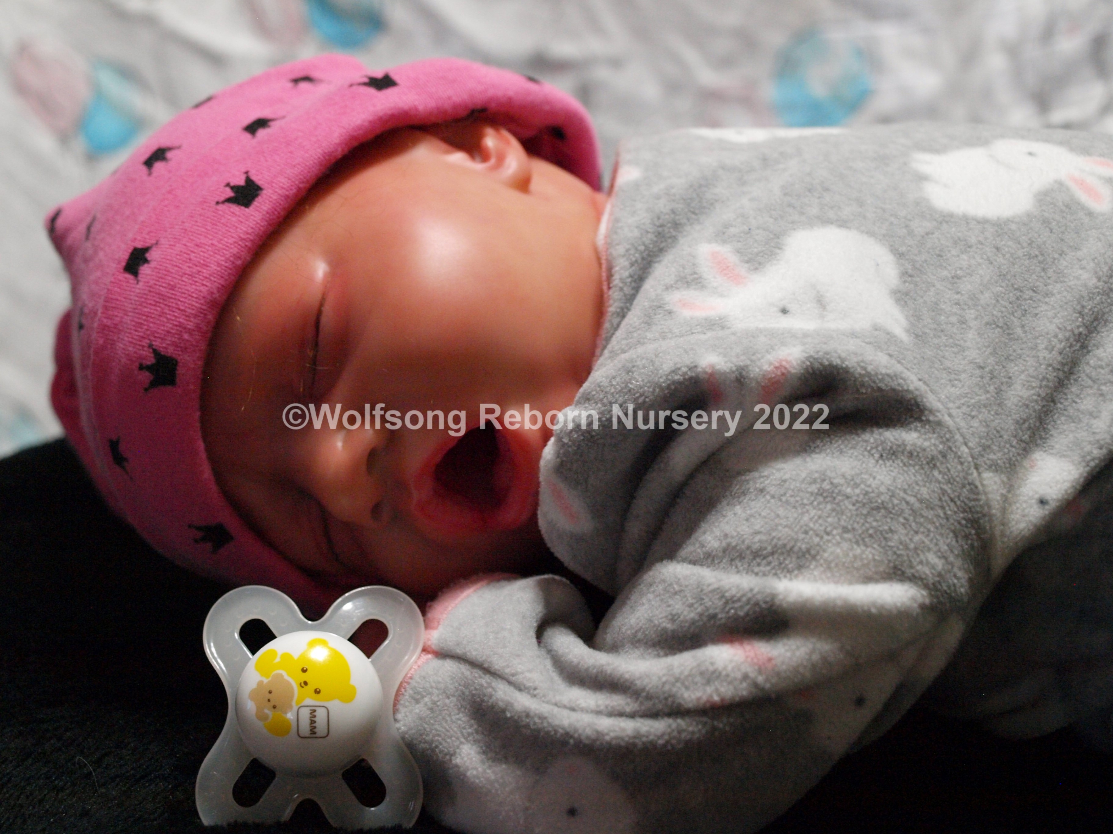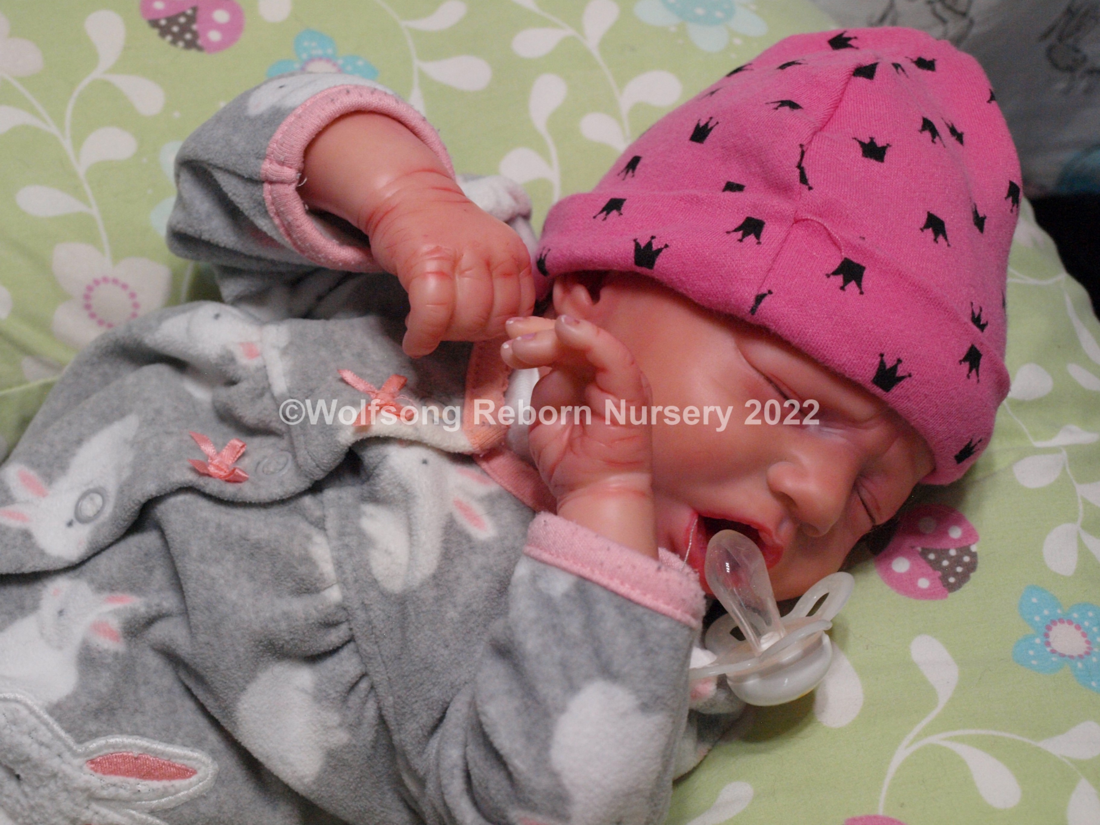 Bountiful Baby Real Born Blake is the first BB sculpt that can take a FULL SIZE pacifier (included). THis is a second kit, so no COA is included, but proof of purchase from BB is available upon request. I ALWAYS USE LEGITIMATE KITS PURCHASED FROM AUTHORIZED DEALERS OR THE SCULPTER THEMSELVES. Eli has a magnet in her head to attach a magnetic hair accessory.