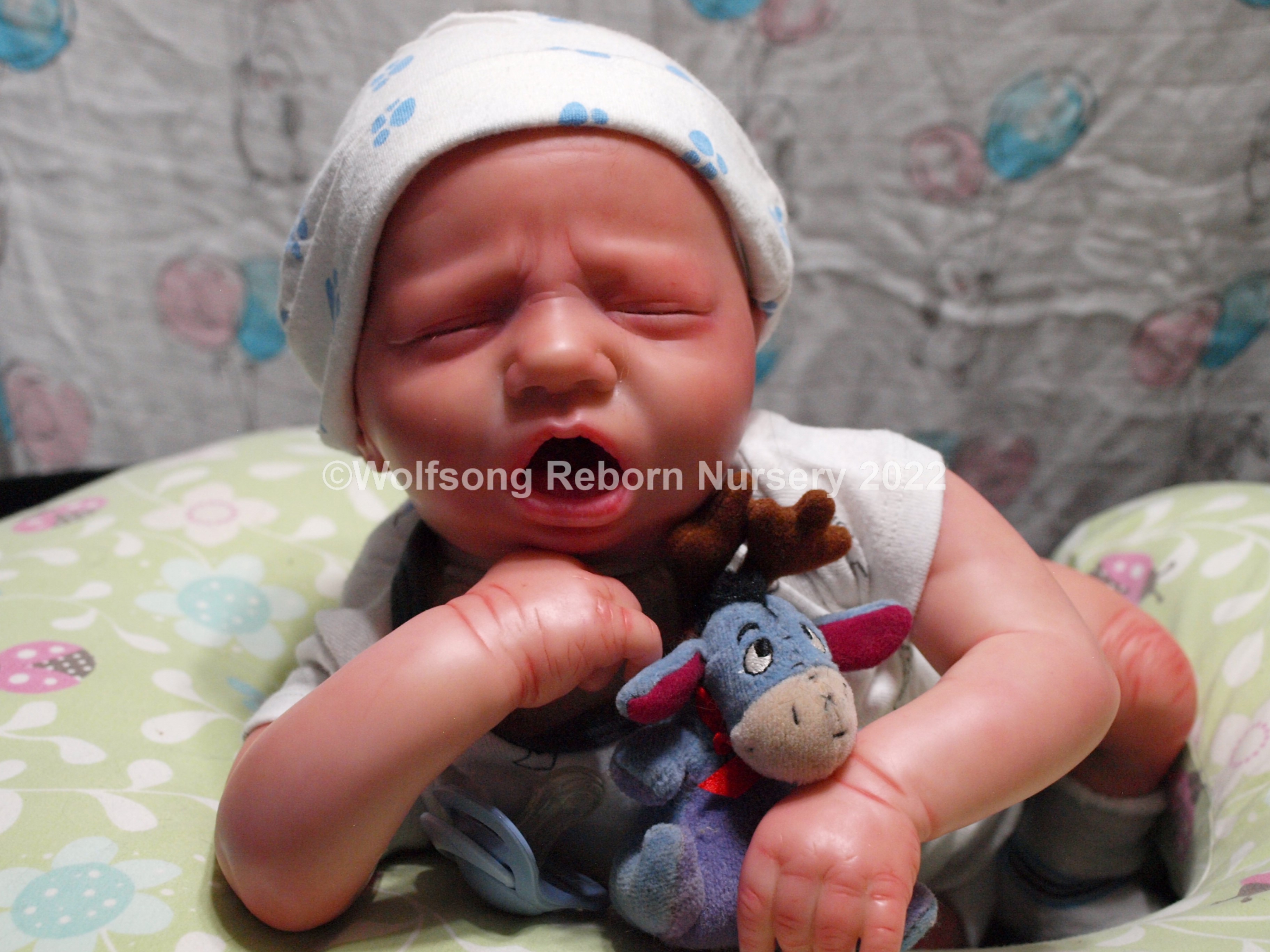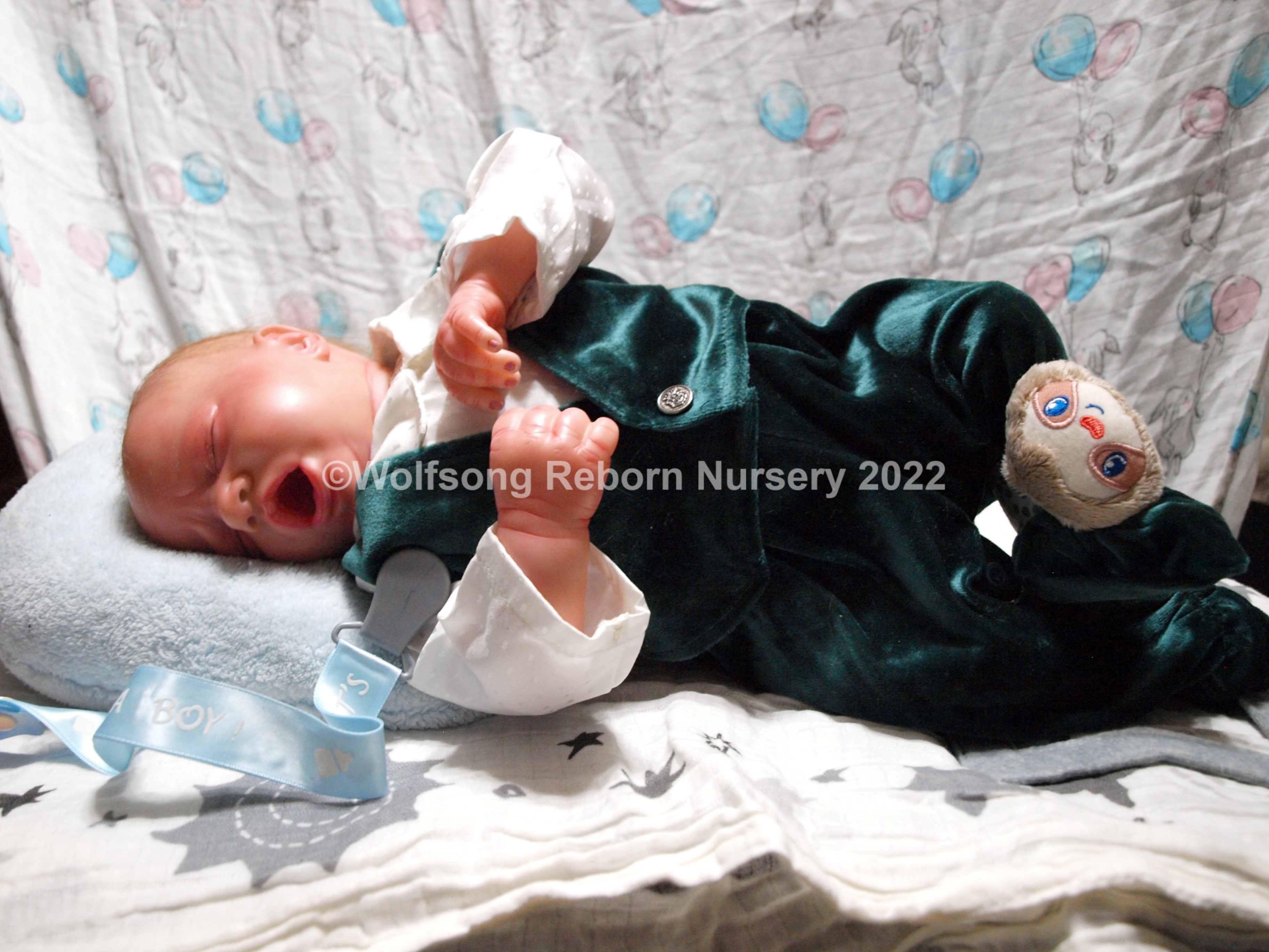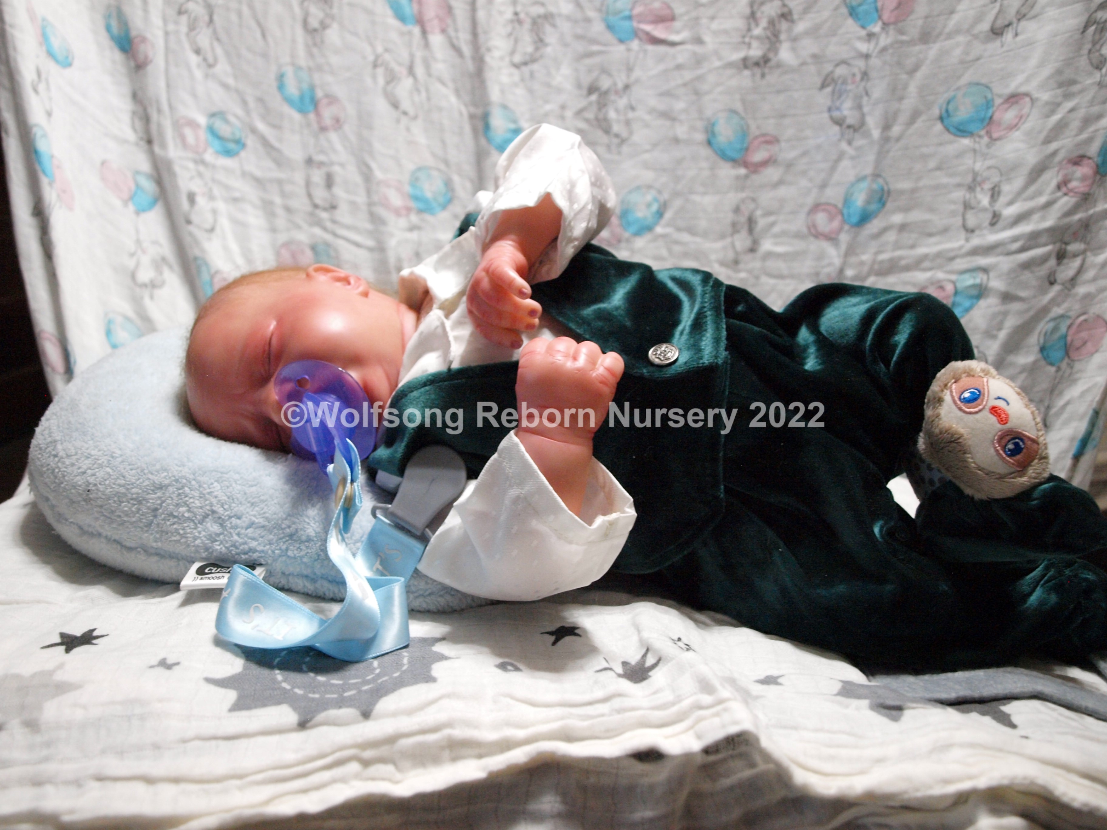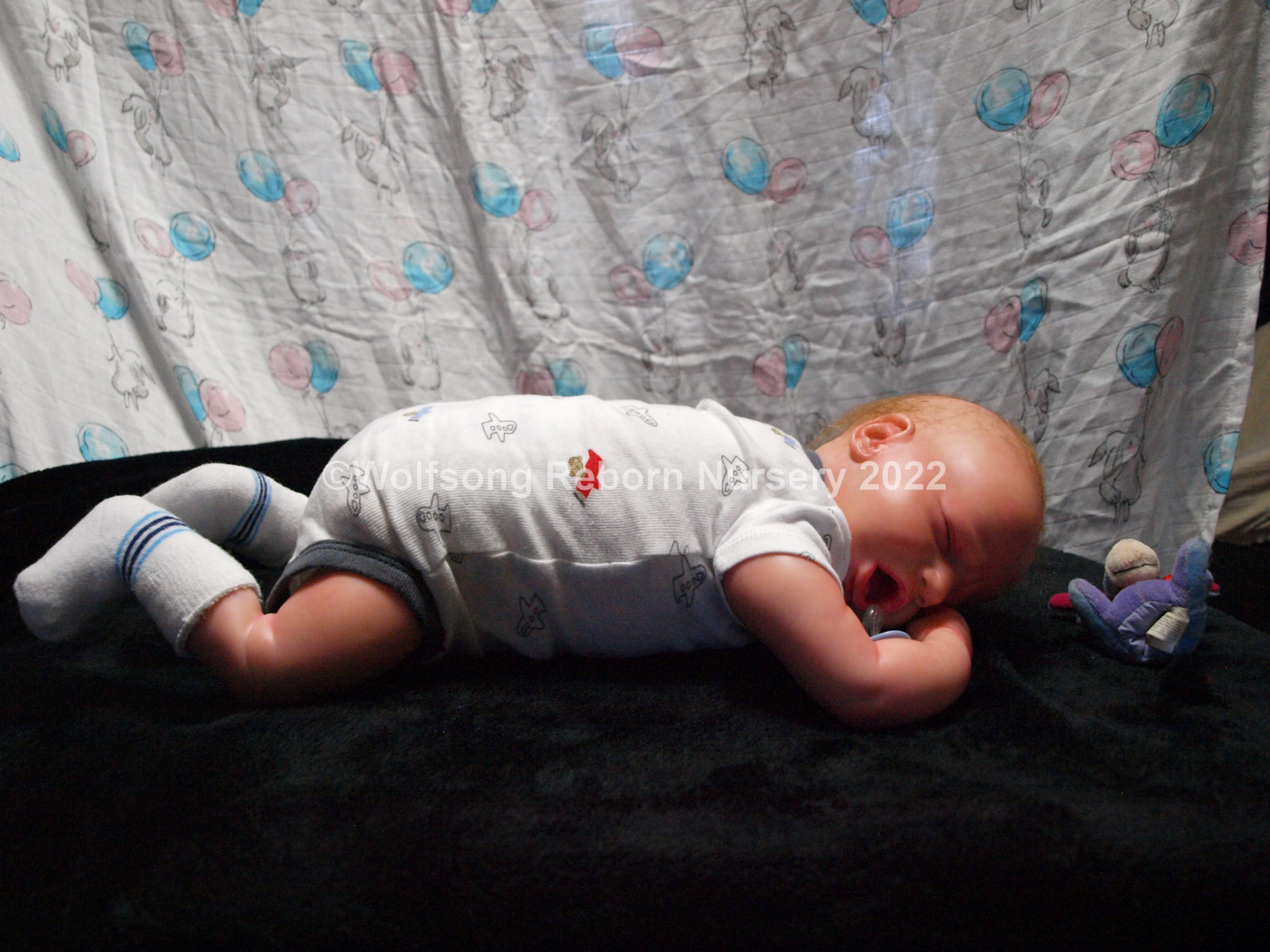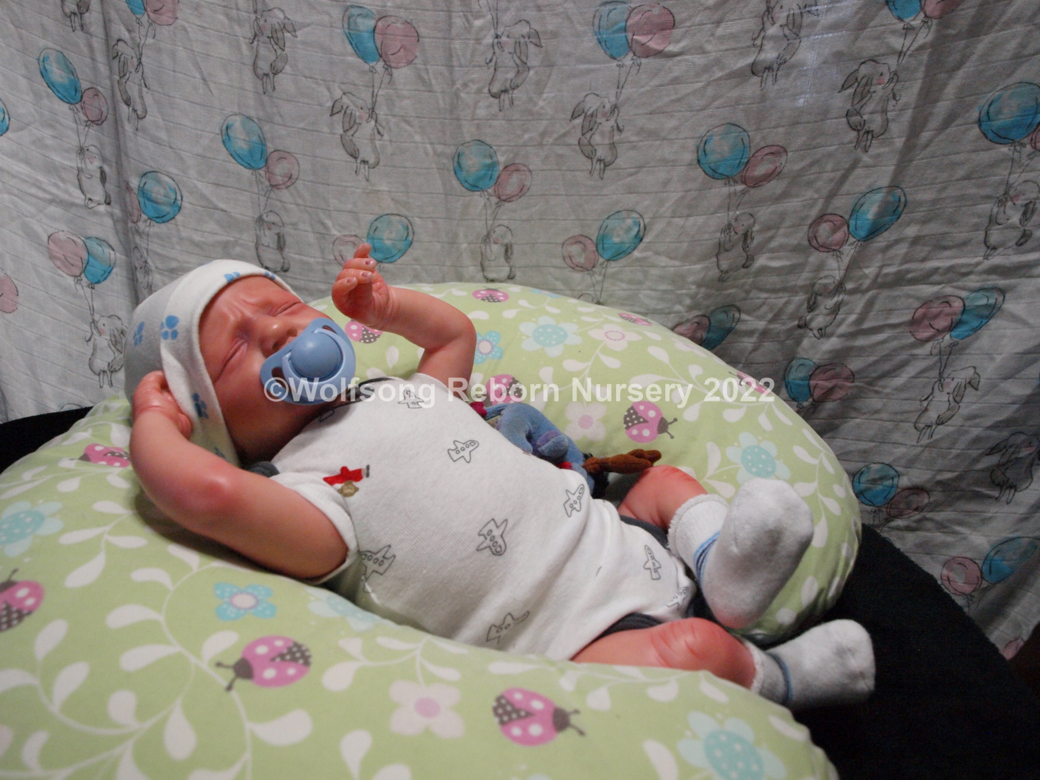 Eli is so sweetly asleep, purely tuckered out from all the birthing she did. It’s been a long journey, but now he’s here and she needs a mommy and or daddy to him. Eli is reborned with Genesis Heat set paints, Coastal Scents and Pan Pastel Powders and has nails done with Miracle Blend Air Dry Paint.