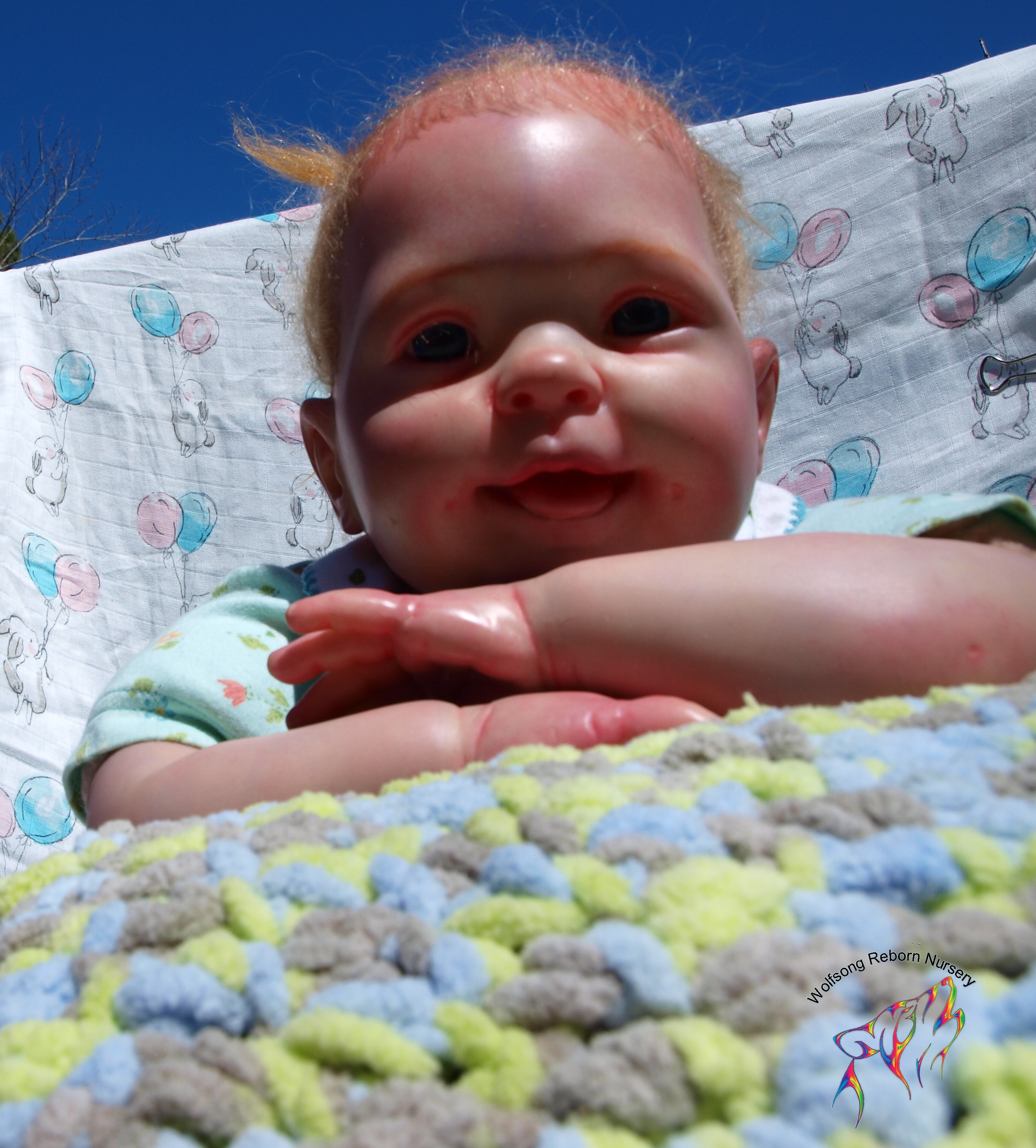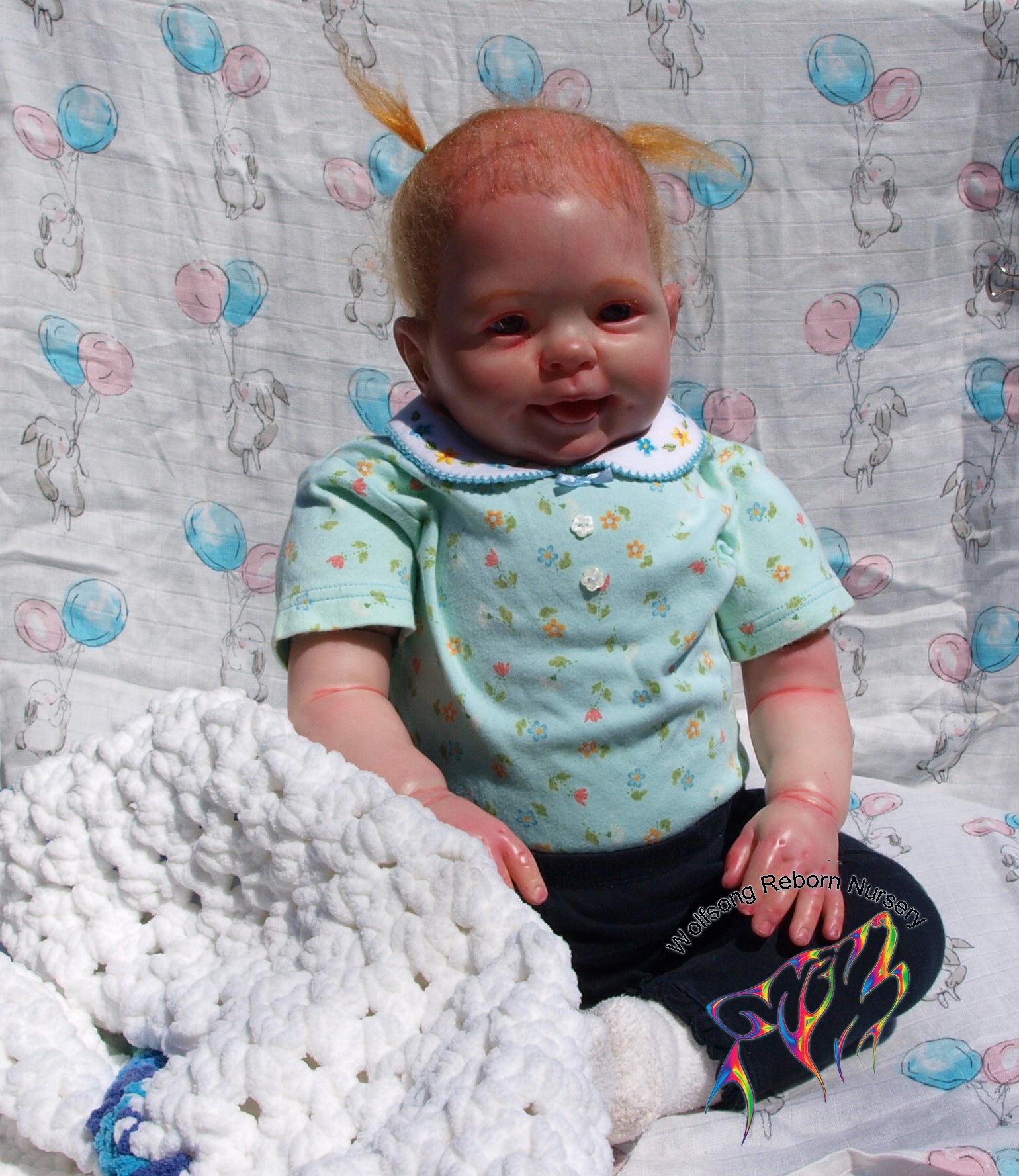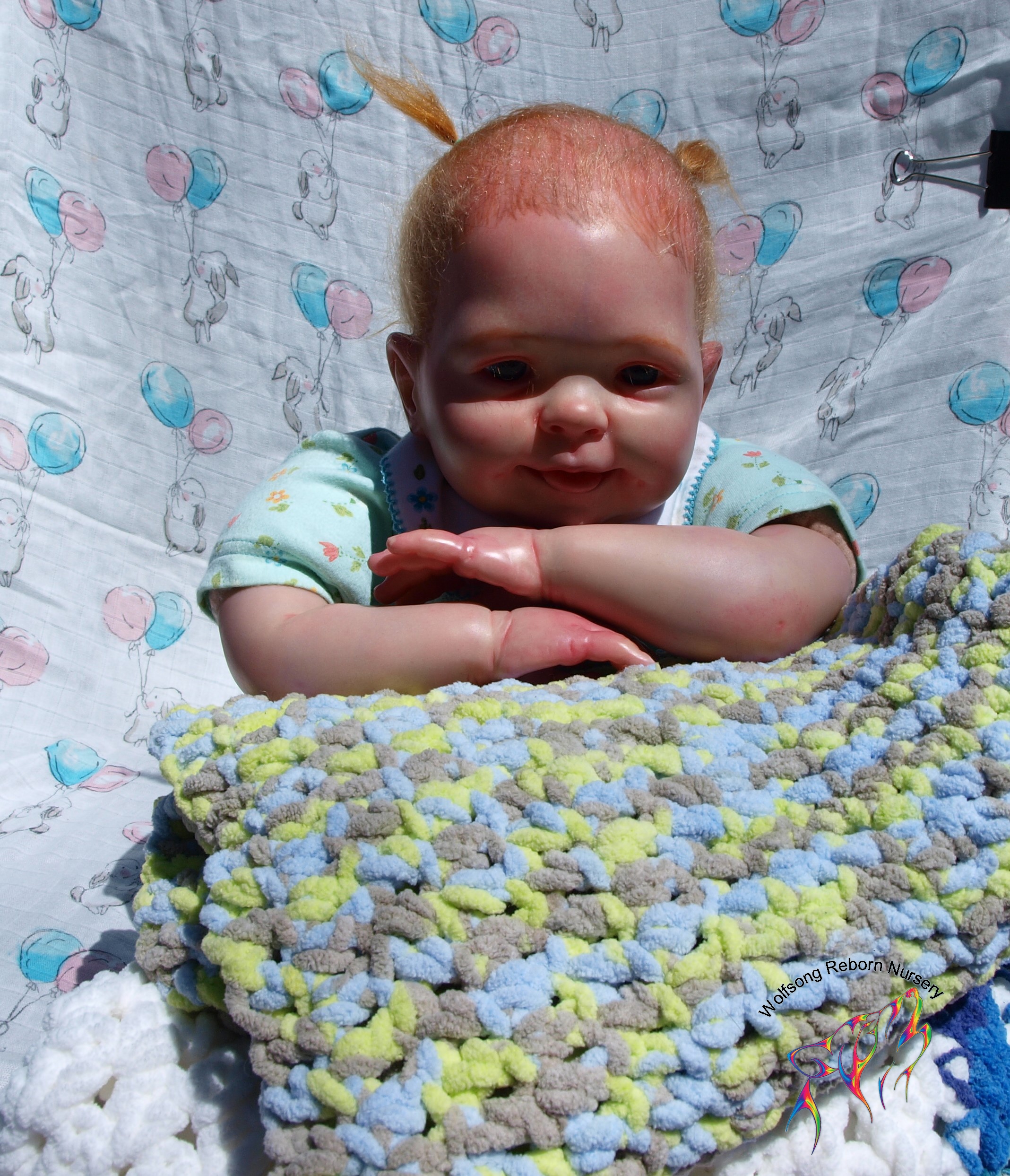 This is Bountiful Baby Cookie 9 Month painted in multiple translucent layers of Primary color (and one layer of Flesh to finish her off) using Miracle Blend Air Dry Paint and Pan Pastel powders. I made this baby for myself, but my dream kit has come available once more, so I’m offering her for sale. Because she is only my 5th baby I consider her a boo boo baby. She is hand rooted over prisma pencil hair in a beautiful shade of red, and she has gorgeous acrylic eyes. She just looks so happy! Lori Lee is a 3/4 limb on a soft clothe body. THIS BABY IS HEAVY! She weighs FOURTEEN (14) POUNDS!!!!! She will go home with several outfits, her lovey and binkie and a small box opening.