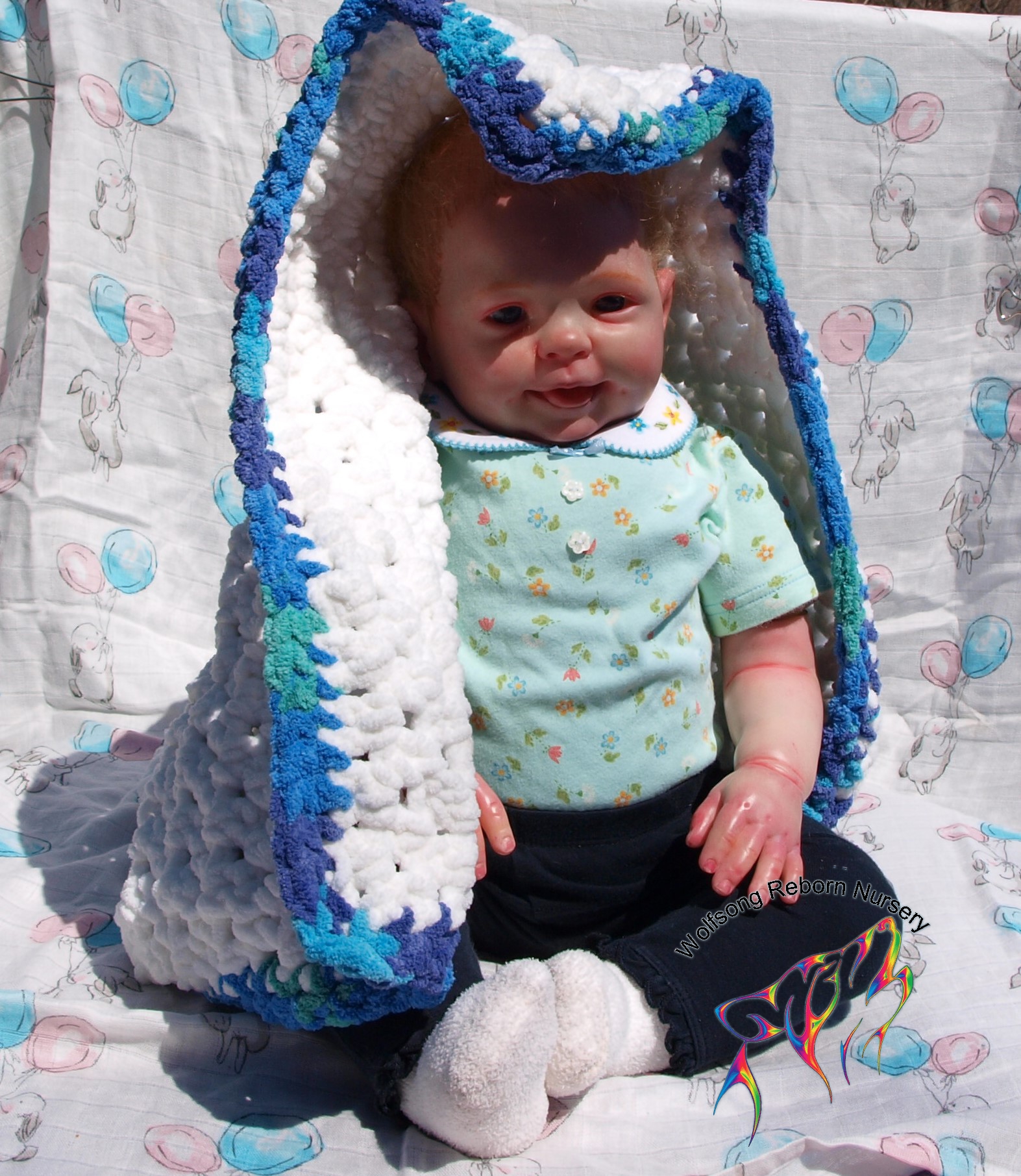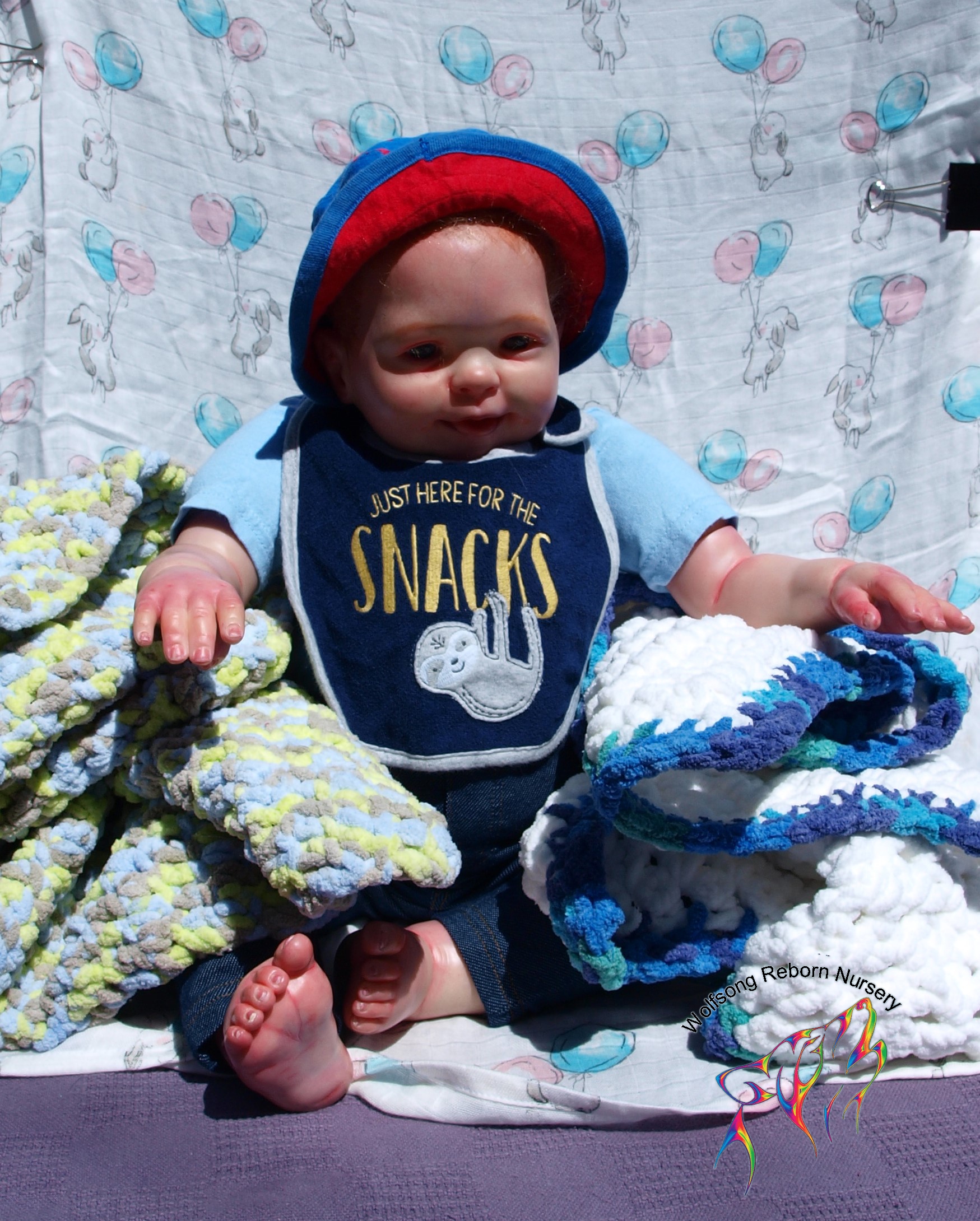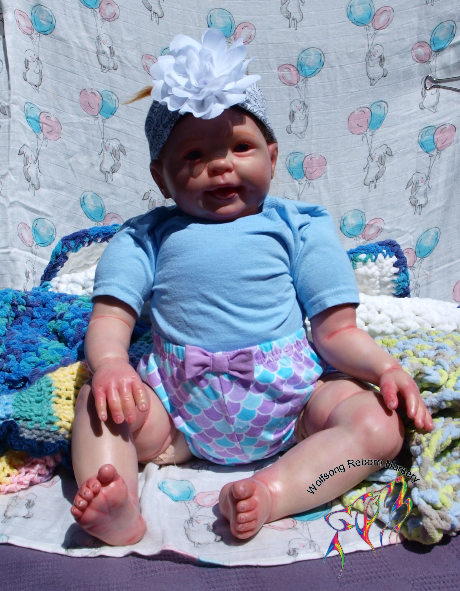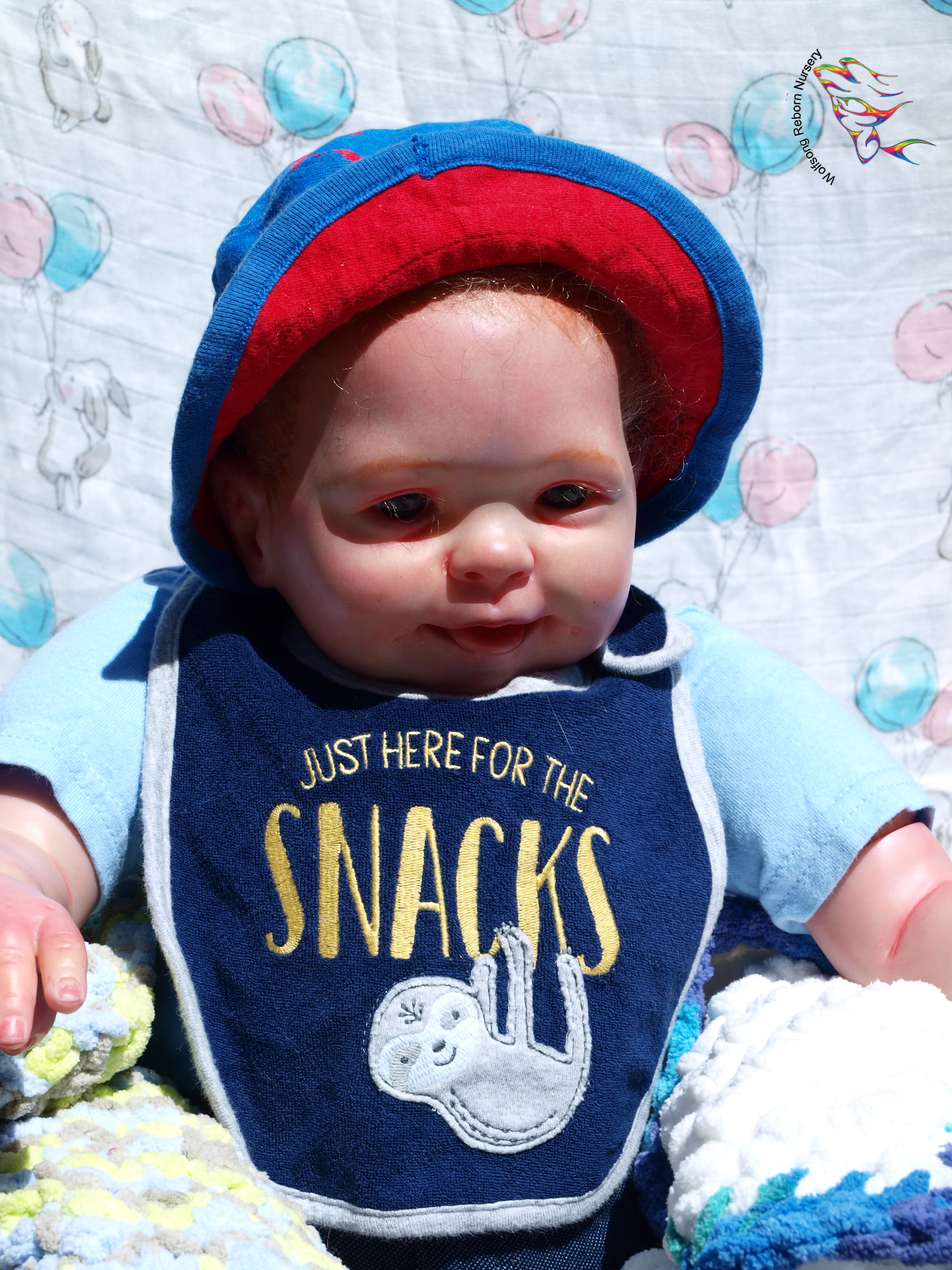 This is Bountiful Baby Cookie 9 Month painted in multiple translucent layers of Primary color (and one layer of Flesh to finish her off) using Miracle Blend Air Dry Paint and Pan Pastel powders. I made this baby for myself, but my dream kit has come available once more, so I’m offering her for sale. Because she is only my 5th baby I consider her a boo boo baby. She is hand rooted over prisma pencil hair in a beautiful shade of red, and she has gorgeous acrylic eyes. She just looks so happy! Lori Lee is a 3/4 limb on a soft clothe body. THIS BABY IS HEAVY! She weighs FOURTEEN (14) POUNDS!!!!! She will go home with several outfits, her lovey and binkie and a small box opening.