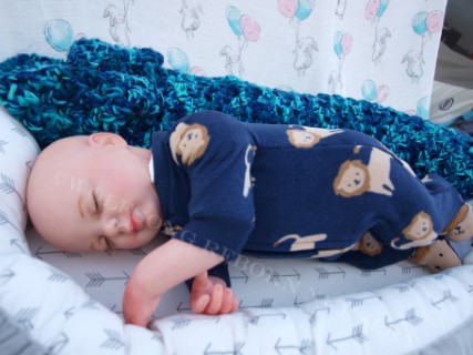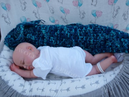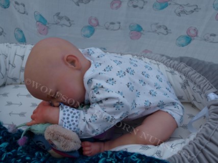 Now for the disclaimer…I’ve only been reborning since March 2021, and because I am new to the art, I consider all my babies BooBoo babies, though no one else who has seen my babies seems to think so. You can check my web page for testamonials from others who have adopted my babies. http://www.wolfsongnursry.com/Babies-For-Sale All my babies sold before Christmas will receive a FREE GIFT, a baby blanket made by The Knotty Raven Creations (https://www.etsy.com/shop/Knottyravencreations) . My babies also come with a care sheet, birth certificate, hospital bracelet, 2 outfits, a magnetic pacifier and pacifier strap, (if you choose a girl, I will also send a magnetic hair ornament) and a small box opening. Baby will be wearing a “hospital outfit” including a hat, to go home with.