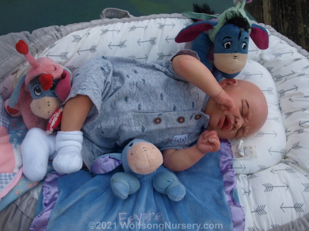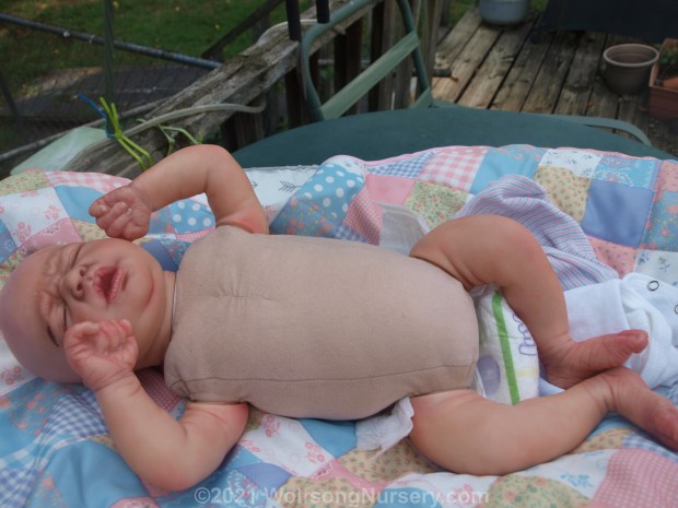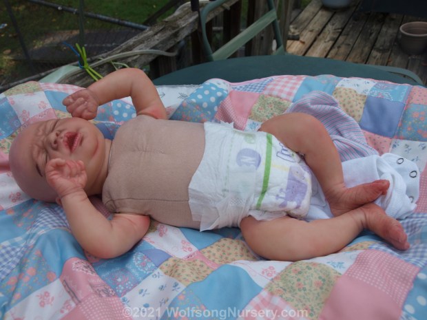 This is NOT a child’s toy, it is a work of art and not meant for rough play. Gently handling is necessary to preserve the integrity of the doll. Also, this is ART, what I consider beautiful, you might not. This doll is far from perfect, there are things you might not like on it. I have been reborning since March, and I am FAR from an expert, But I am incredibly proud of River and I believe it is an beautiful piece of art. If this isn’t your idea of a wonderful baby, please keep looking; you deserve to have your dream baby.