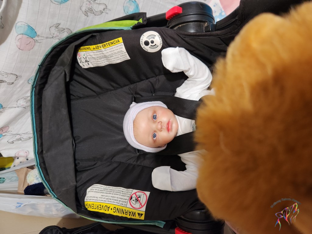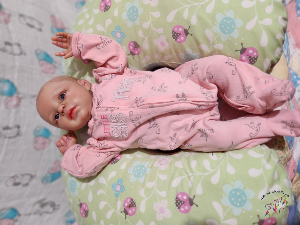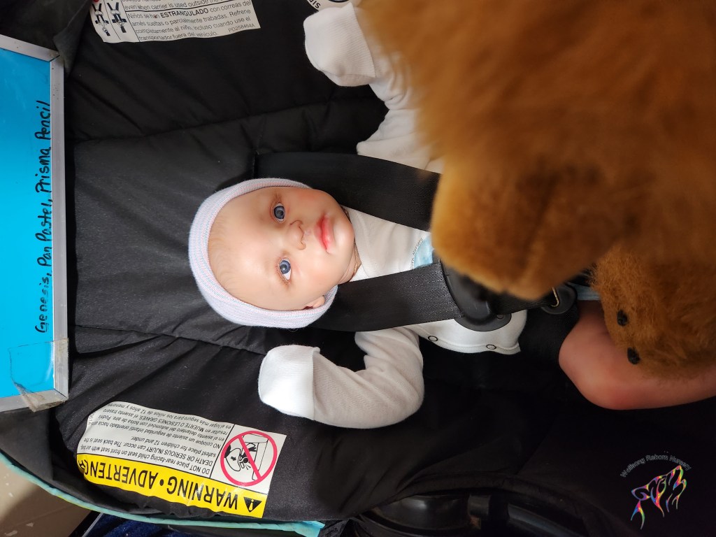 Then comes the fun part. I put her together, using silicone pads to make the bottom and tummy feel more real and used 2 different types of polyfill and high quality #3 glass beads .75-1mm in a microfiber bags; one in the body, one in the head for weight…make sure to support her little head, just like a real newborn. And once her heart was added, she was finished ! Now there are a couple of places I’ve found some flaws that I believe are in the vinyl. Due to those (ask for photos or go to her page) I’m selling her as a BooBoo baby.