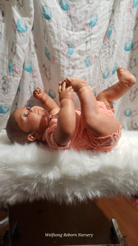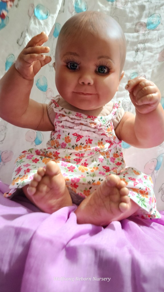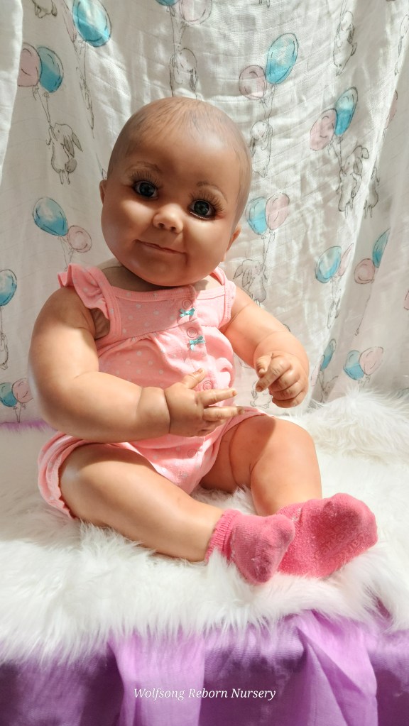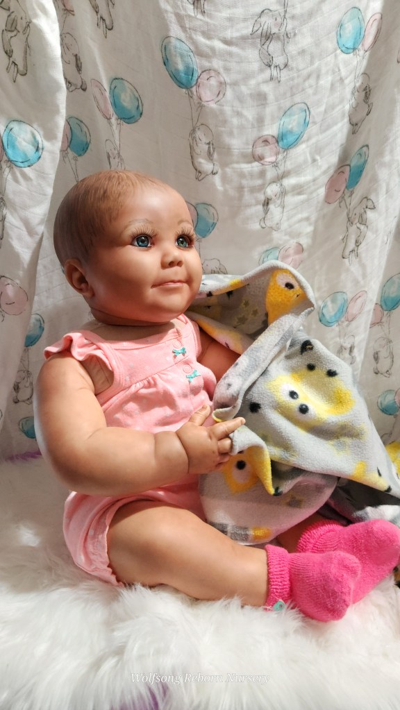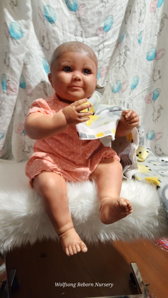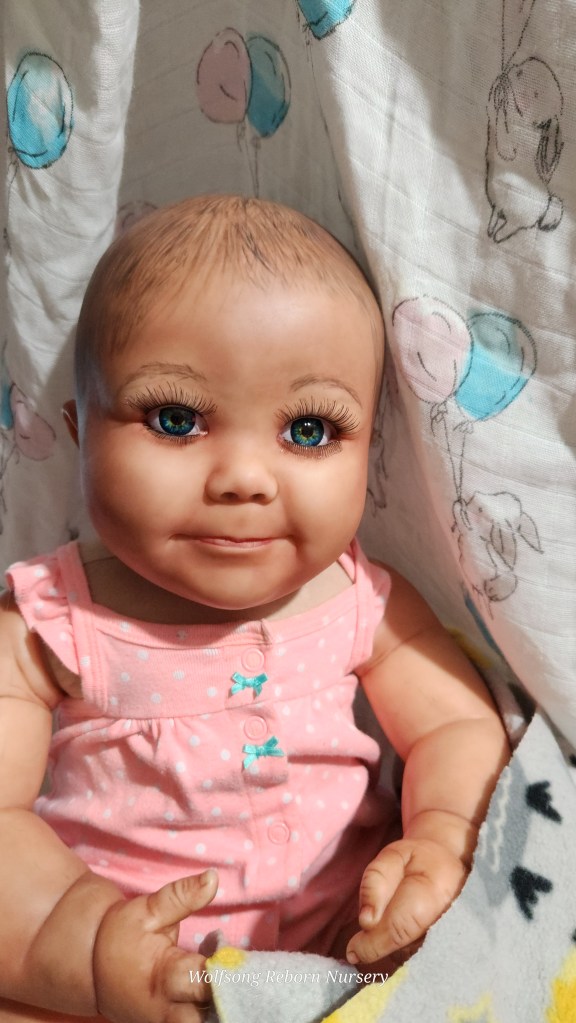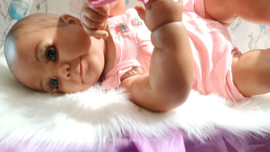 Both Girls were painted with Genesis Heat Set Paints, Coastal Scents Powders and Pan Pastels, two kinds of PolyFill, Silicone Pads in the tummy and bottoms…..even birth marks on both girls!