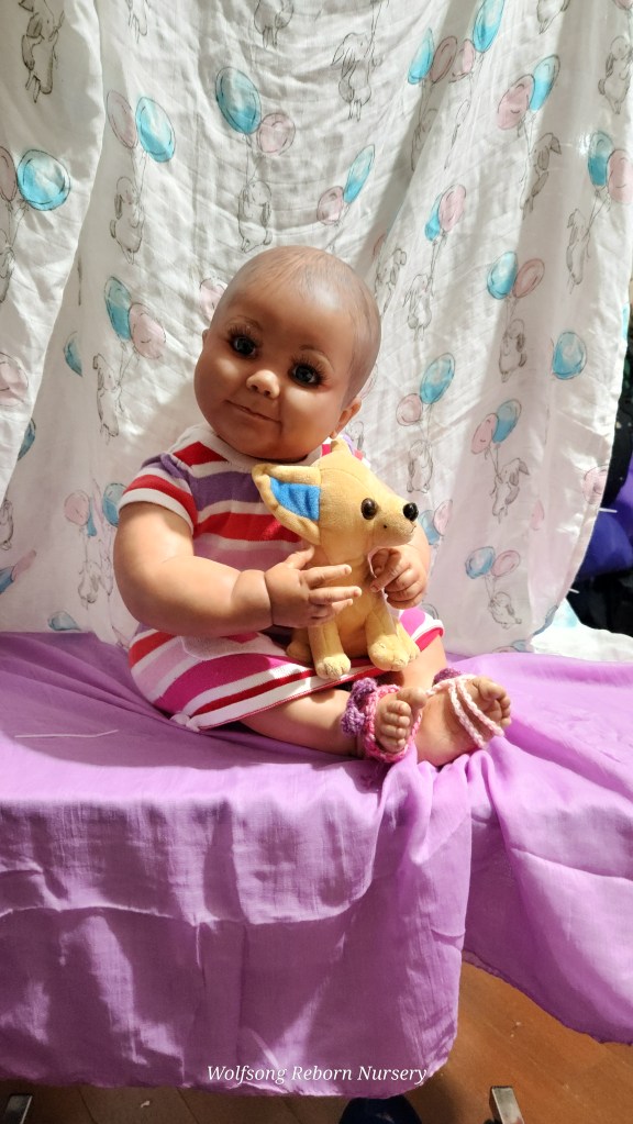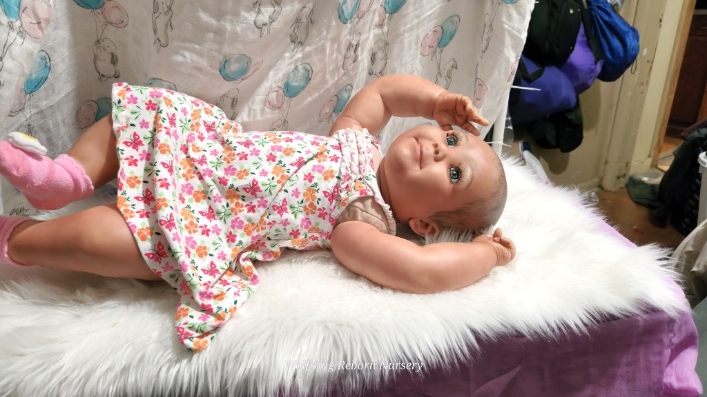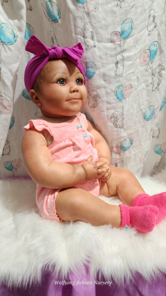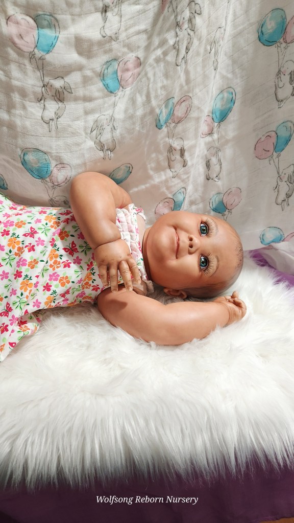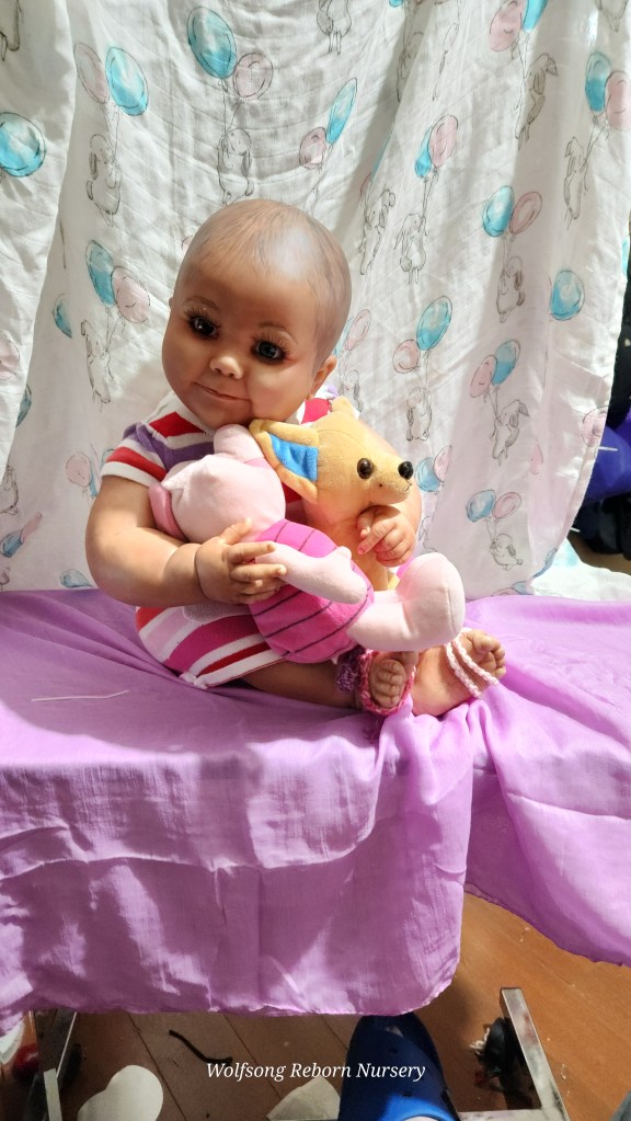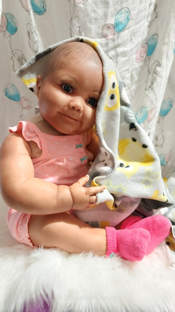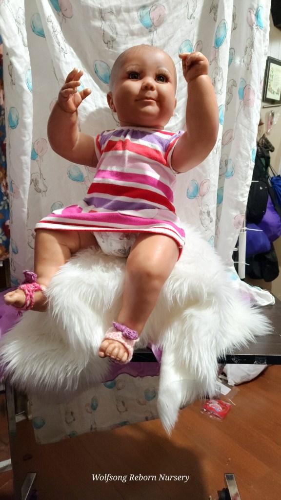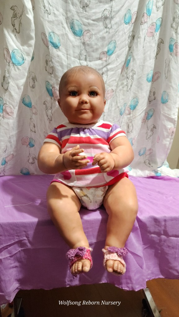 Both Girls were painted with Genesis Heat Set Paints, Coastal Scents Powders and Pan Pastels, two kinds of PolyFill, Silicone Pads in the tummy and bottoms…..even birth marks on both girls!