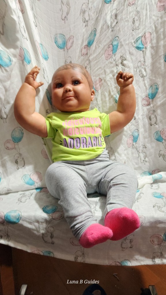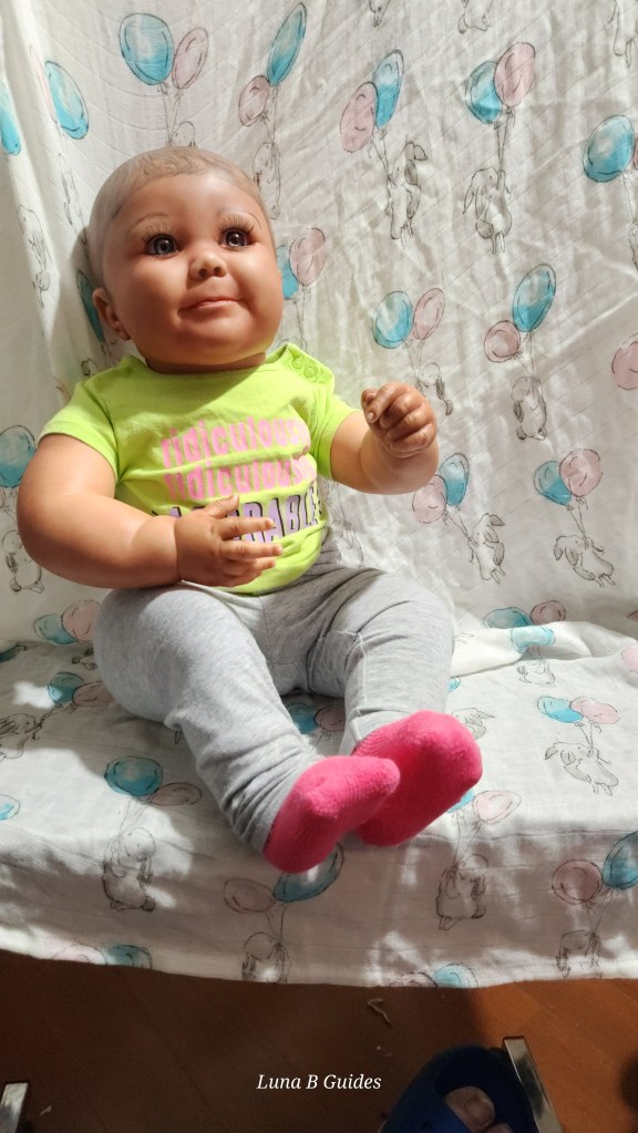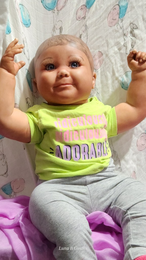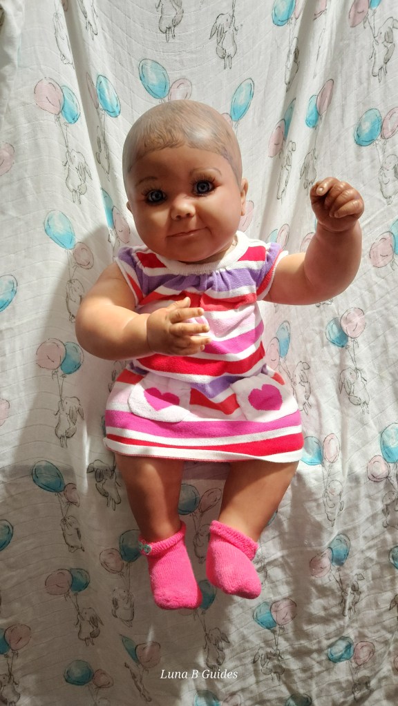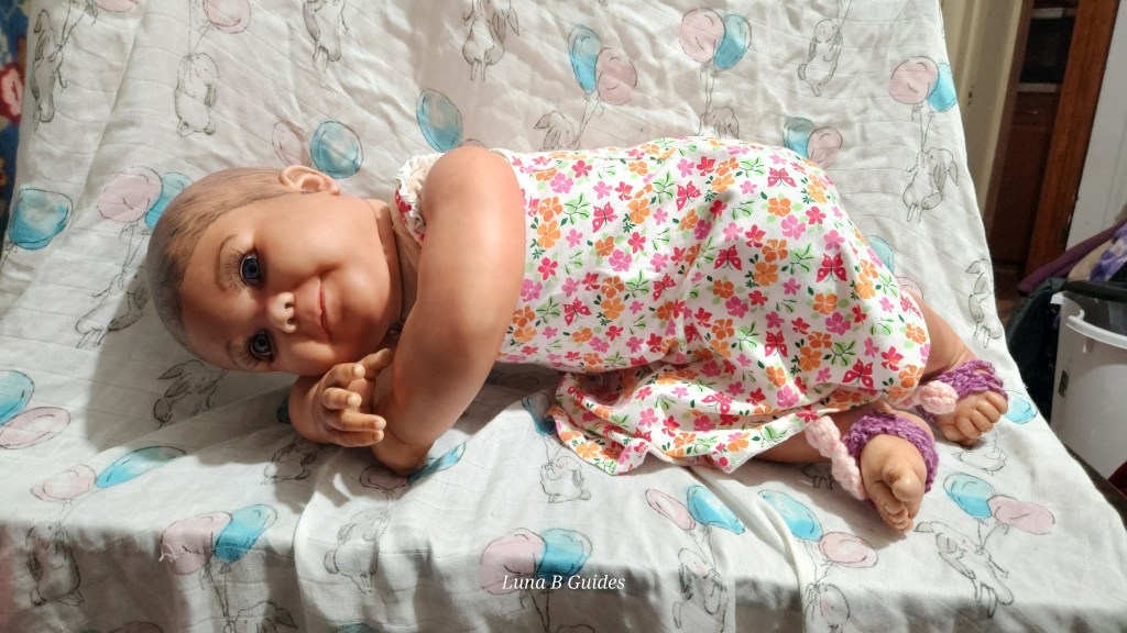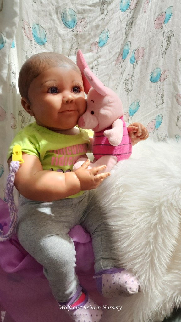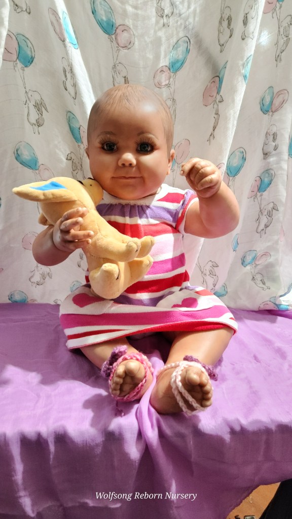 Both Girls were painted with Genesis Heat Set Paints, Coastal Scents Powders and Pan Pastels, two kinds of PolyFill, Silicone Pads in the tummy and bottoms…..even birth marks on both girls!