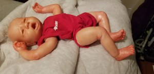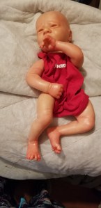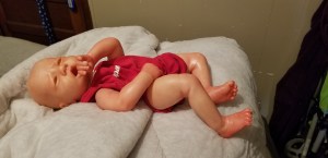 “Cass spent the night in mommy’s and daddy’s bed. Then we spent the whole day shopping for him. I am still in awe of how perfect he is! Everyone in town knows about my reborn babies