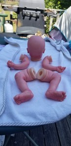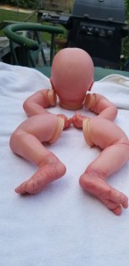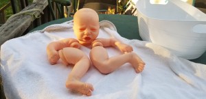 Meet CASS born September 9 at 2:01 am weighing 4lbs 12.8oz. Created by Marta Towne of Wolfsong Reborn Nursery using Miracle Blend and RebornFX Air Dry Paint and Coastal Scents Powders. The kit is Bountiful Baby Realborn Blake Awake (COA included with purchase). The head must be supported just like a real baby and weighted with glass beads and stuffed with two different types of poly-fill, the body is so soft it just melts into your arms.
