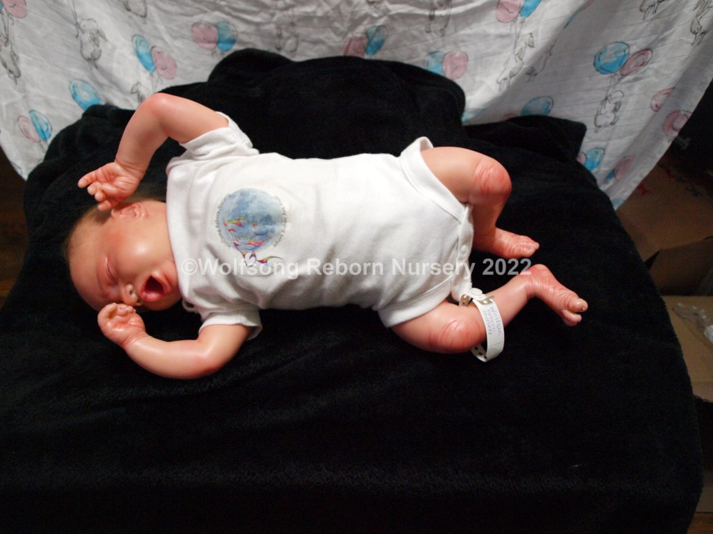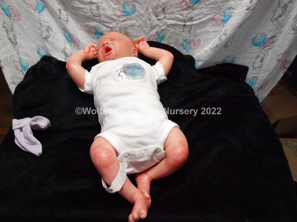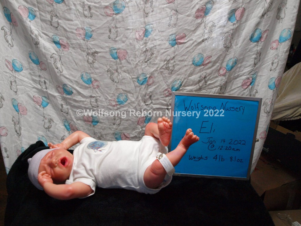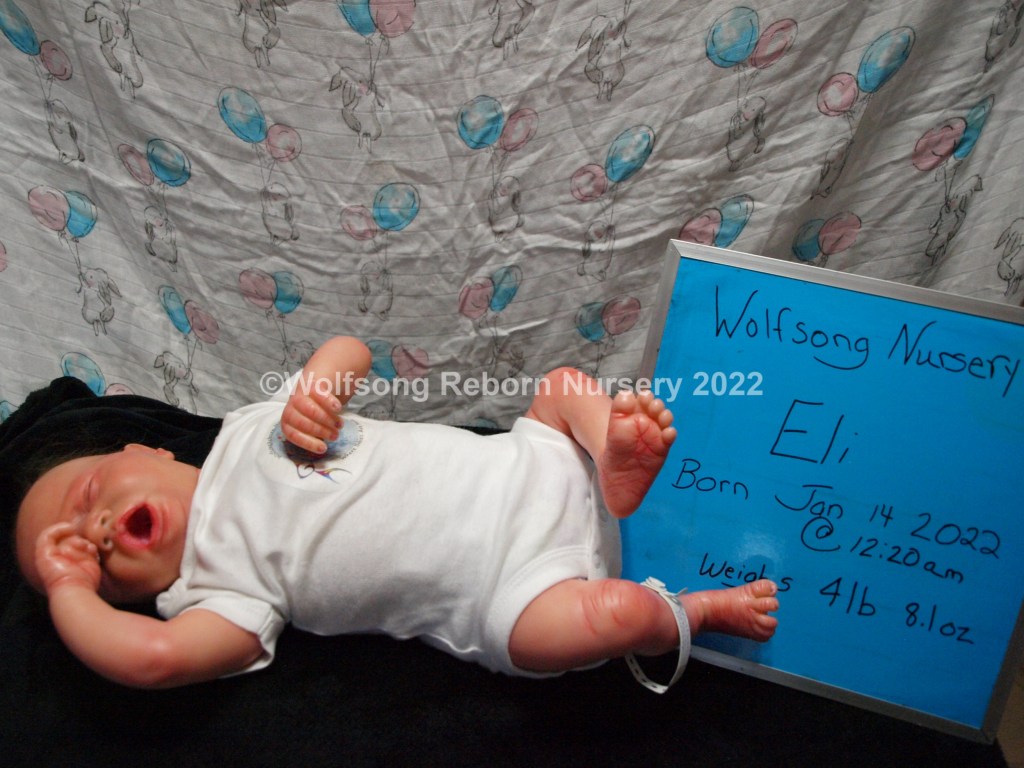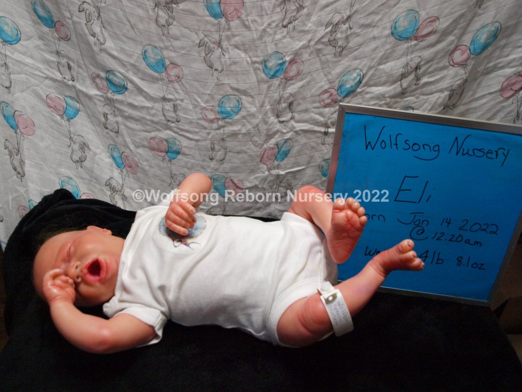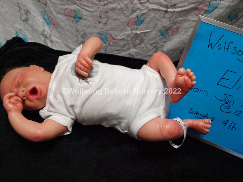 Eli is so sweetly asleep, purely tuckered out from all the birthing she did. It’s been a long journey, but now he’s here and she needs a mommy and or daddy to him. Eli is reborned with Genesis Heat set paints, Coastal Scents and Pan Pastel Powders and has nails done with Miracle Blend Air Dry Paint.