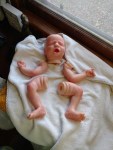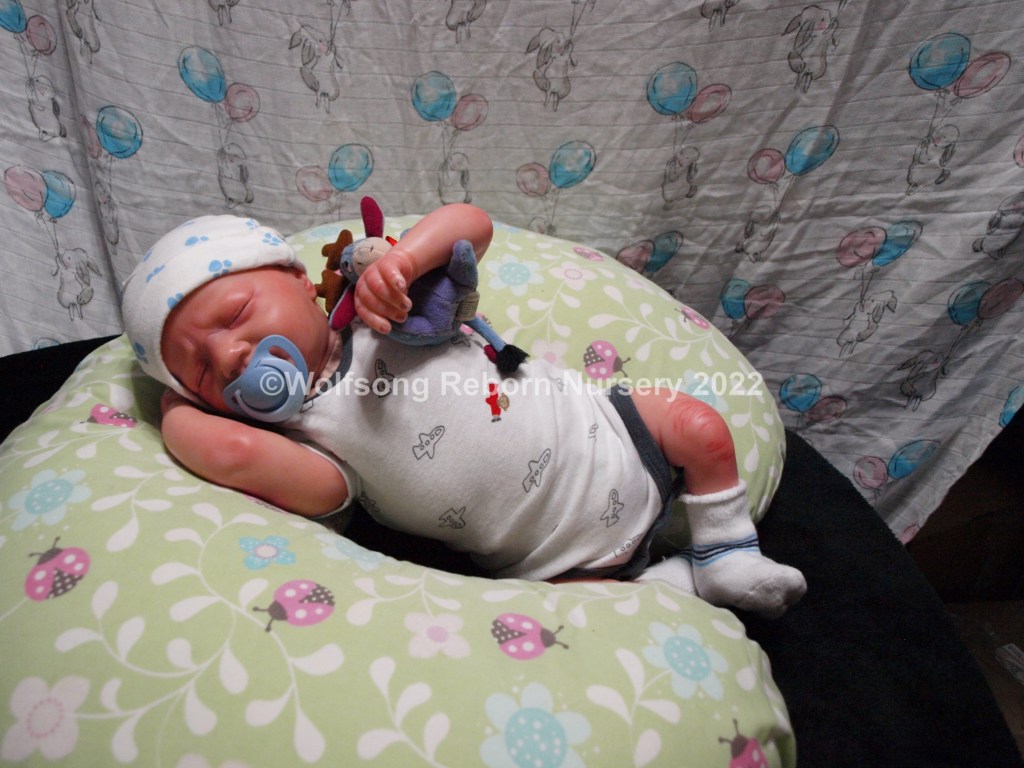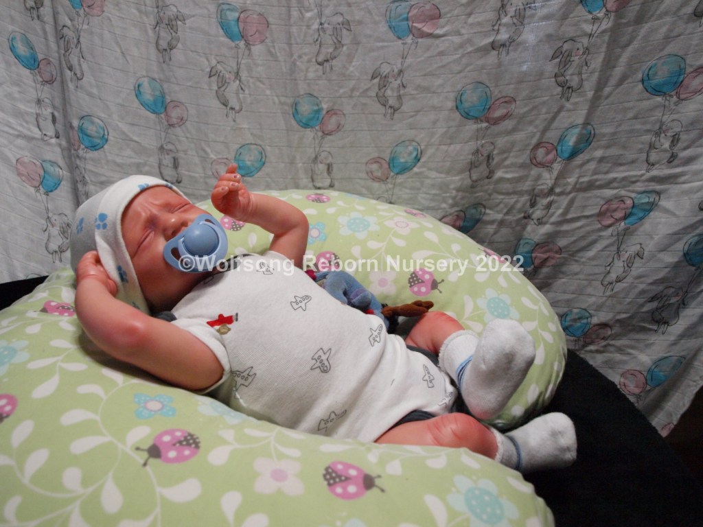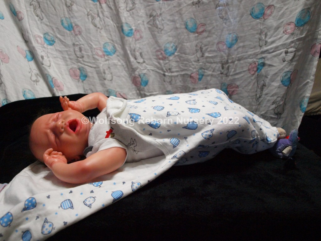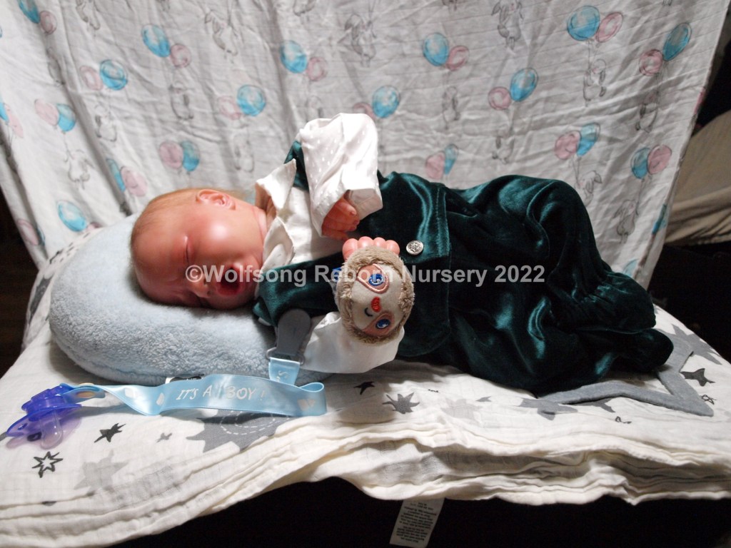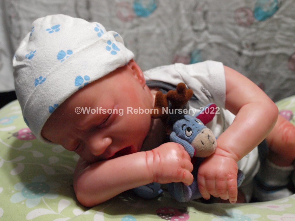 Eli is so sweetly asleep, purely tuckered out from all the birthing she did. It’s been a long journey, but now he’s here and she needs a mommy and or daddy to him. Eli is reborned with Genesis Heat set paints, Coastal Scents and Pan Pastel Powders and has nails done with Miracle Blend Air Dry Paint.