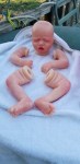 Eli has the sweetest little silicone and poly-fill tummy and her little squishy bottom is more siilcone pieces, His tiny little body is gently weighted with high quality glass beads enclosed in microfiber bags to protec them from spills. Two types of poly fill, regular for the majority of the body and super soft for the tummy and bottom! Silicone additions to her tummy and bottom give a high end feel to this sweetest little one. All together, this baby is one of the most huggable, snuggly babies I’ve made in my career.. And at 4lbs 8.1oz she or he is just perfect for you to love. Blake has sparsely rooted hair and eyelashes. He or she is lovabe, snugglable and ready to go home