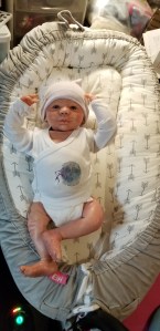 Cupid will go home in his Hospital outfit (side snap shirt, hat and hospital bracelet), with 2 outfits of my choice, a pacifier, pacifier strap, hat or magnetic hair accessory, Lovey and blanket. Also included is a small box opening. Click Here to go to Cupids For sale page!
