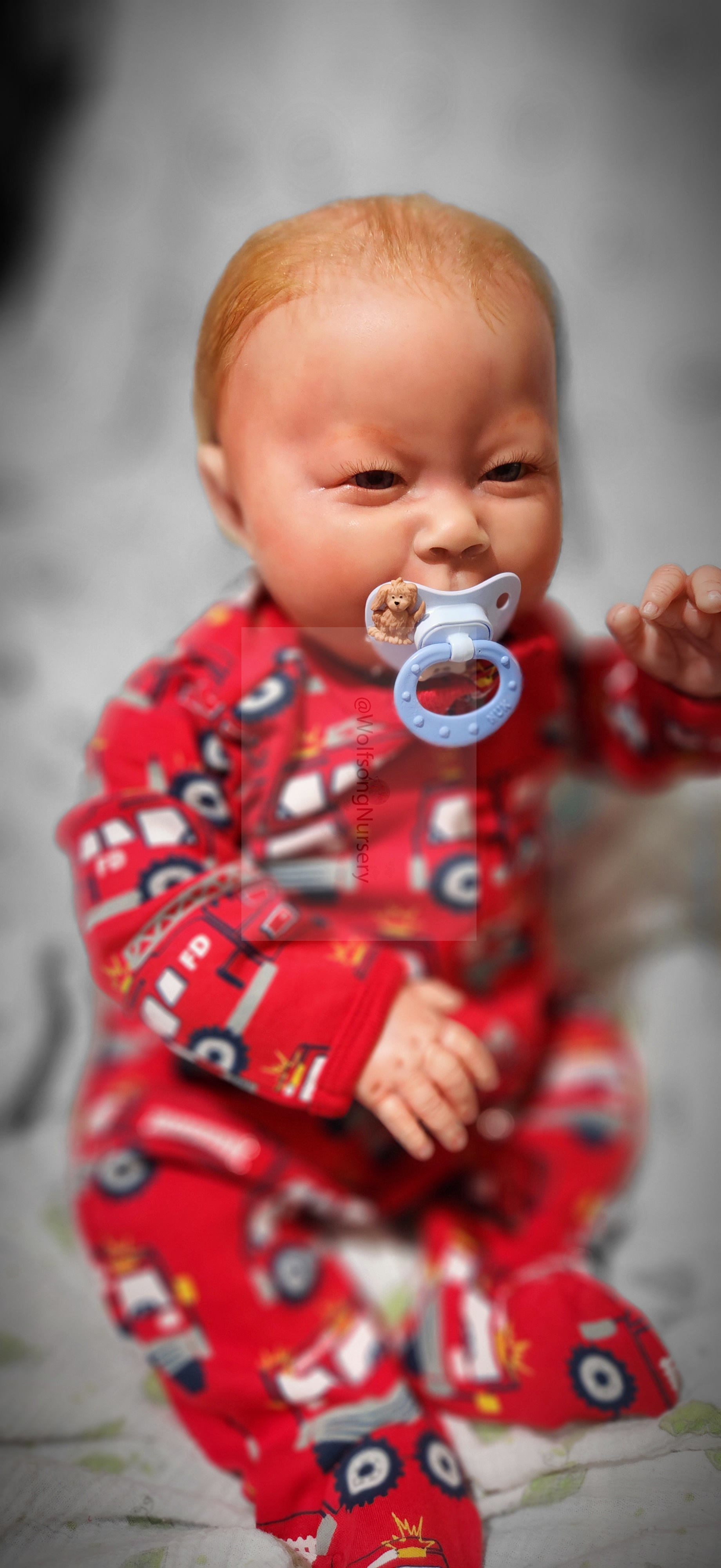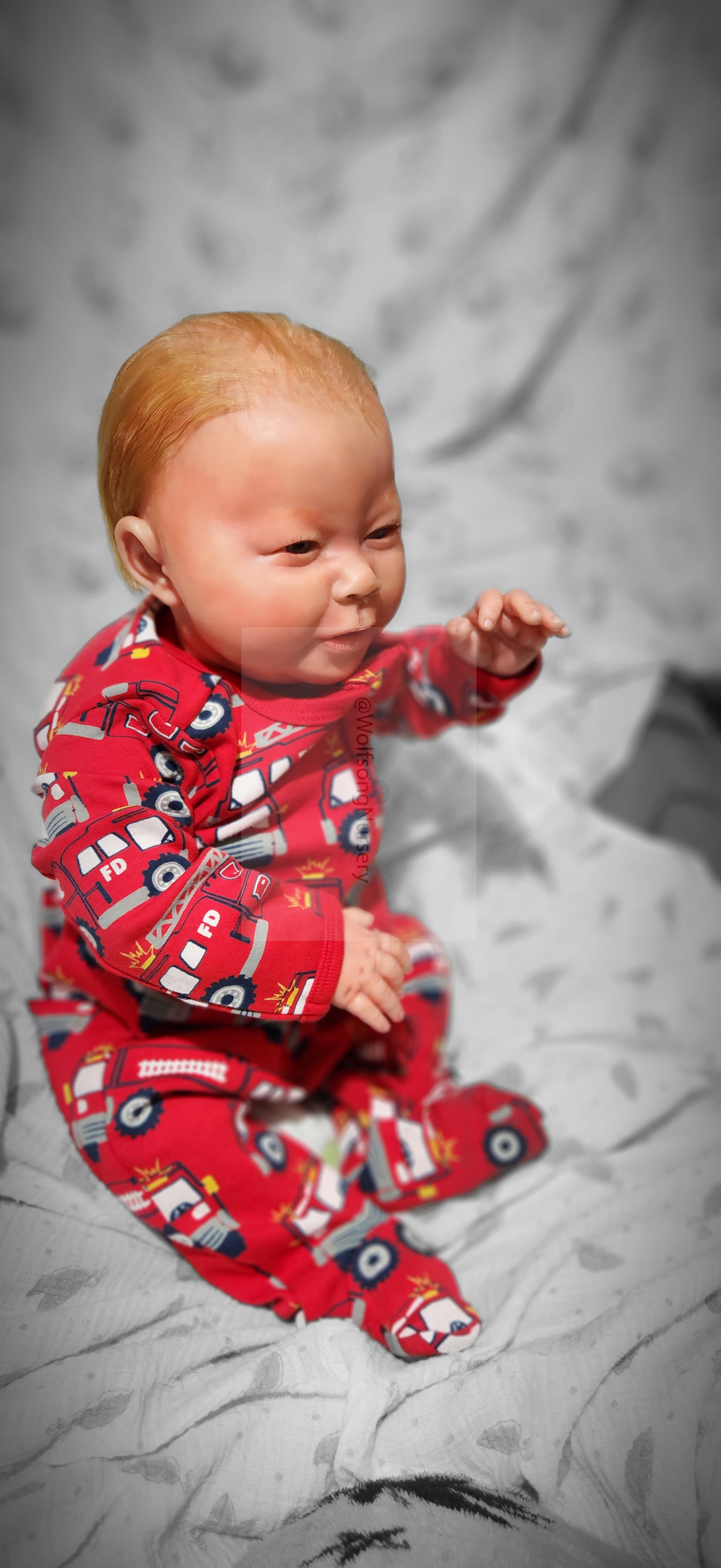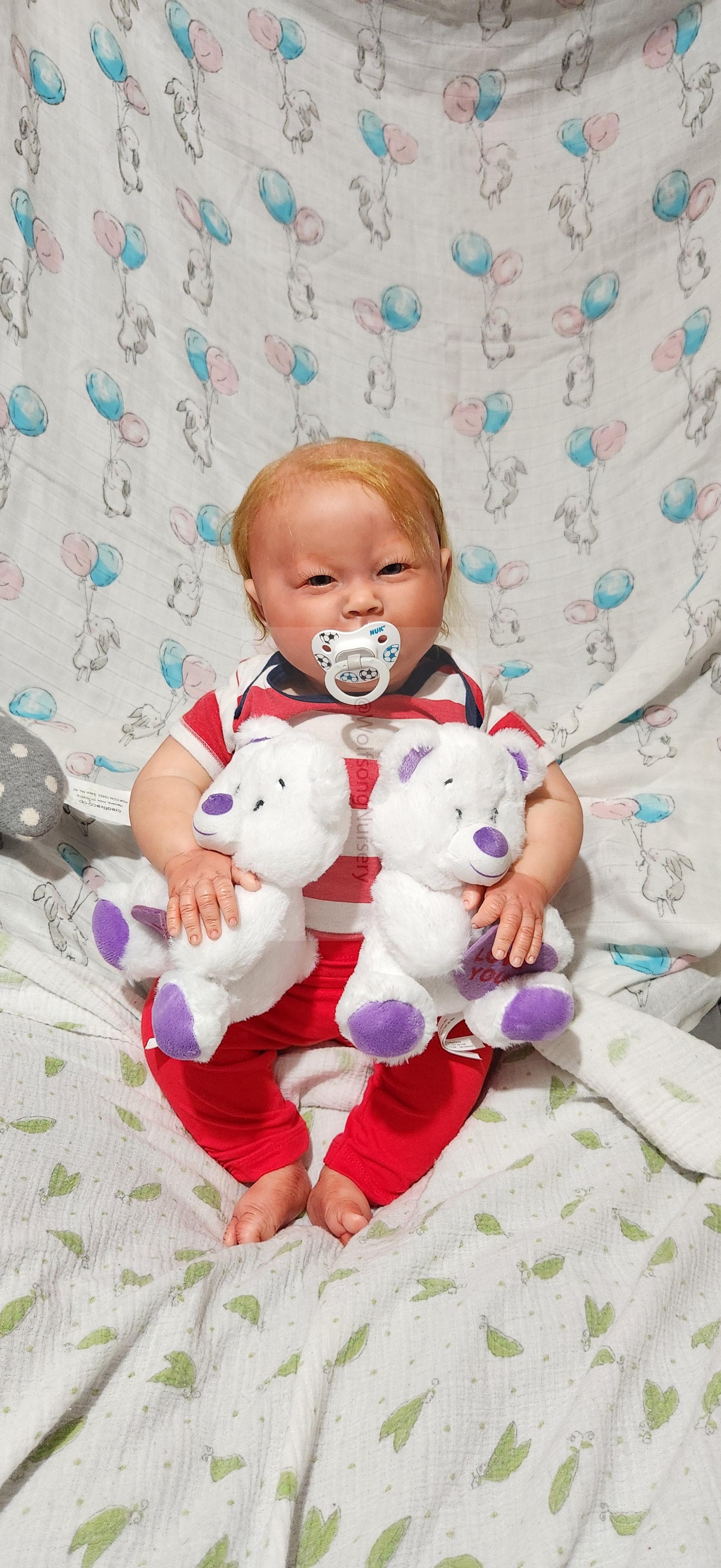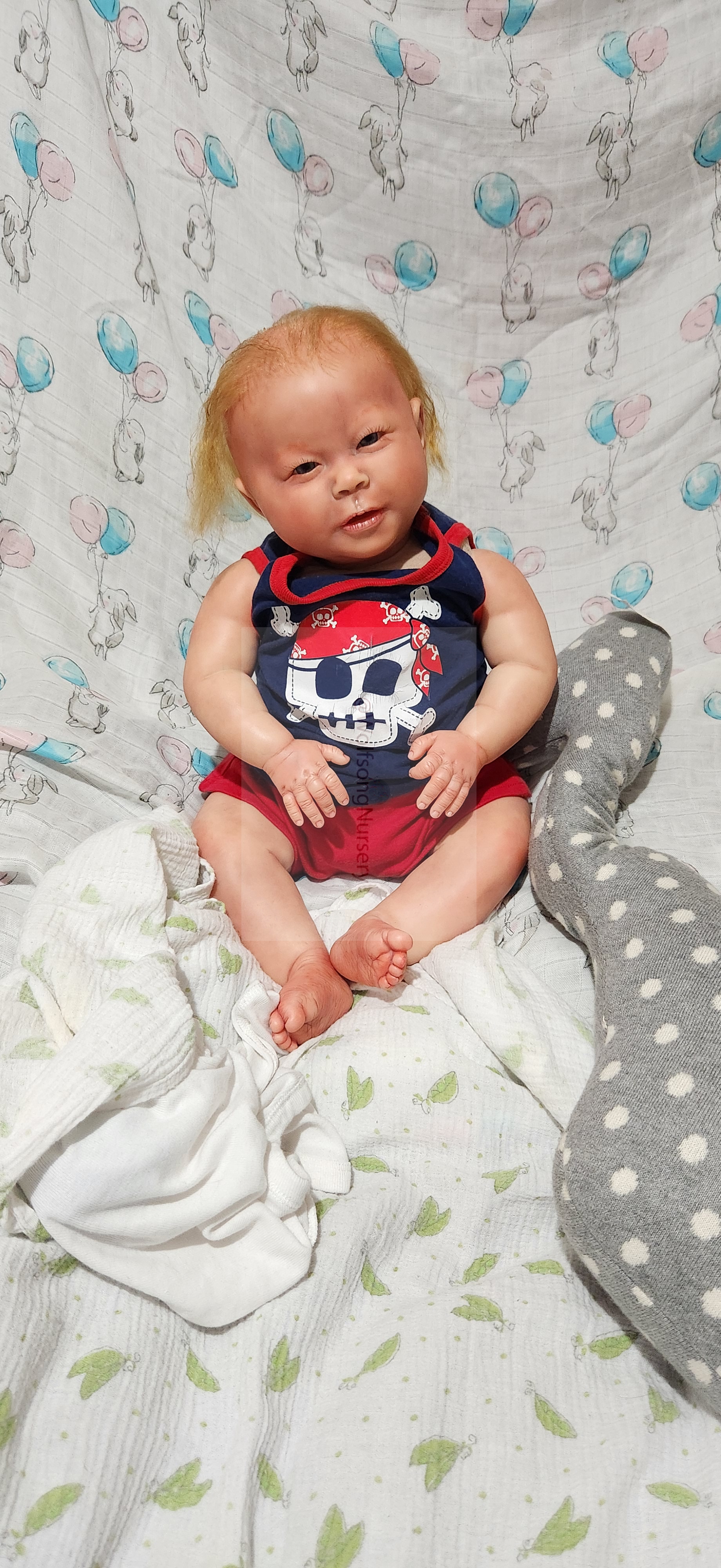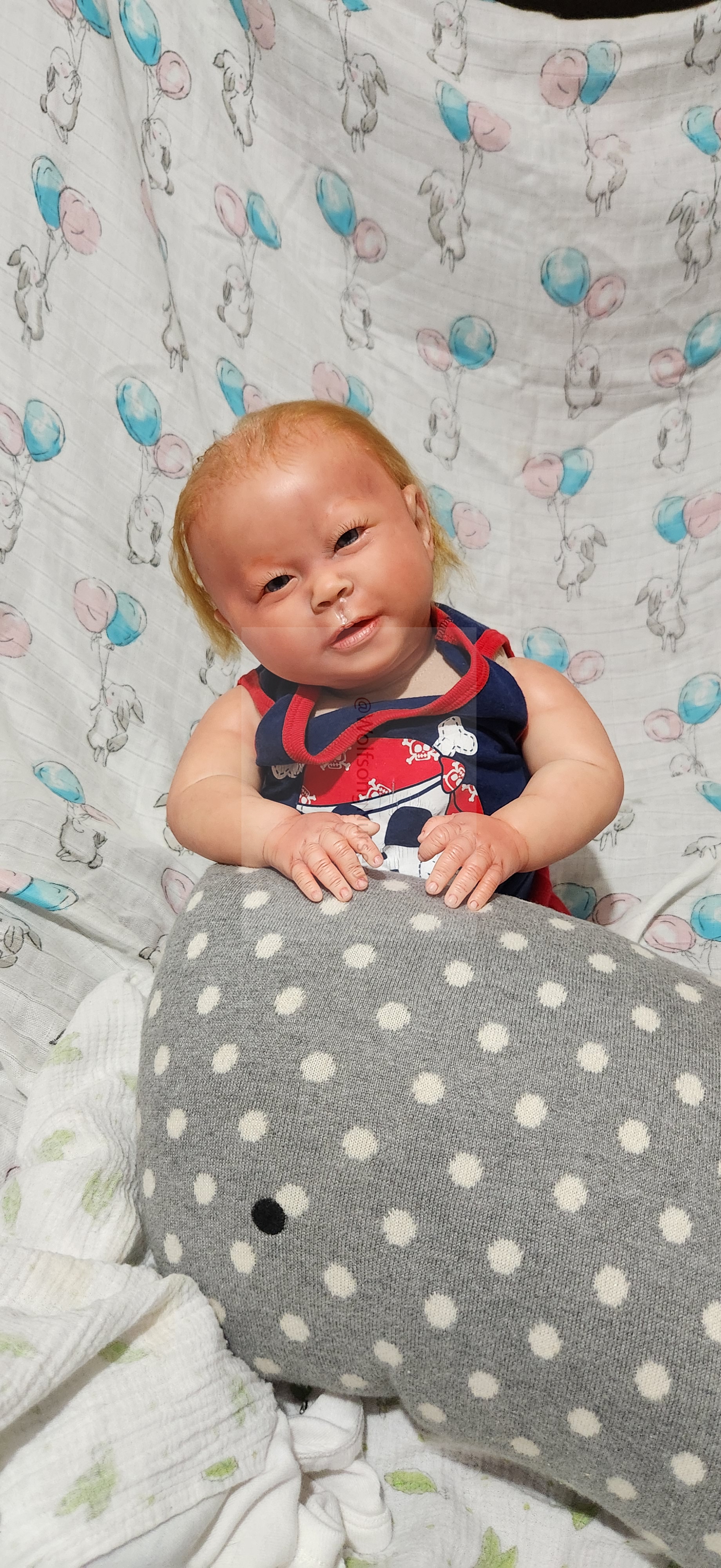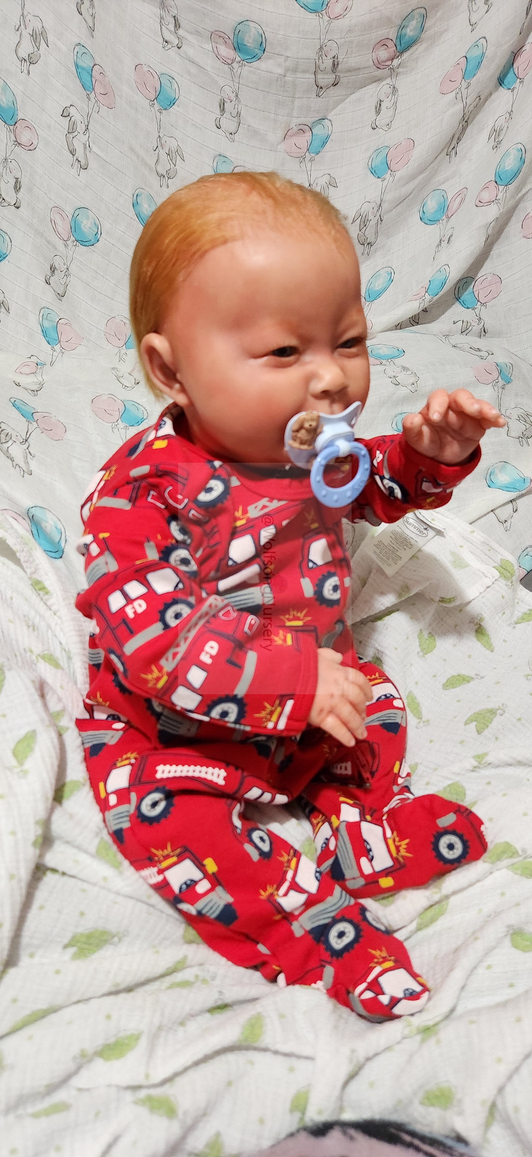 Samson Mark Miller was “born” March 25, 2023 at 4:20 Pm and he weighs 10 pounds 7 ounces at 23 inches long. He started with a Bountiful Baby Playfull Sage kit and was customized by Marta Towne of Wolfsong Nursery using Genesis Heat Set Paints, Pan Pastel and Coastal Scents Powders and using silicone pads in his tummy and bottom along with #3 glass beads, Poly pellets, 2 types of PolyFill (Super Soft and Regular) and he, like all my babies, takes one of my hearts with him to his Mommy, Denise Miller.