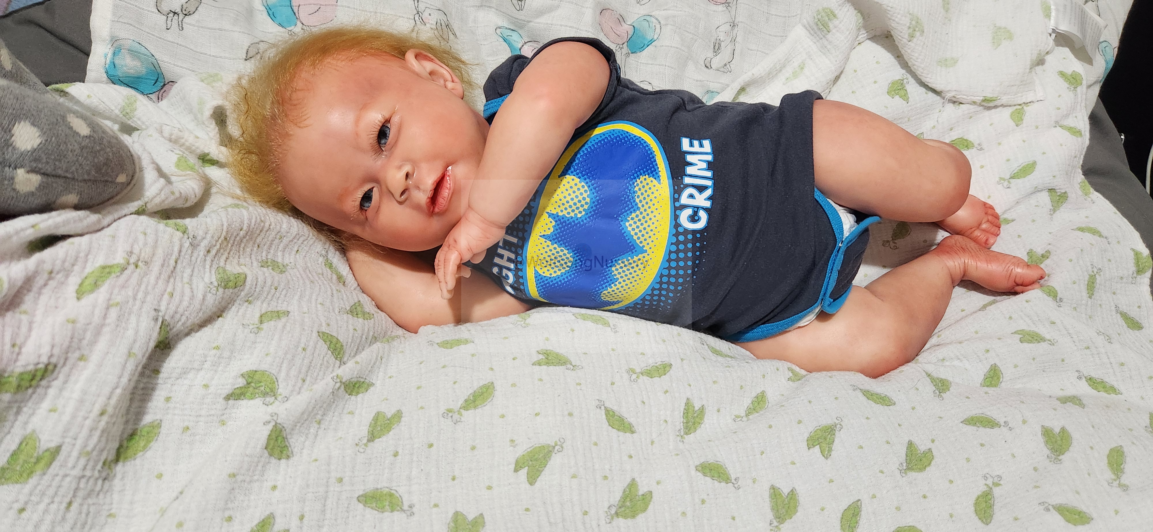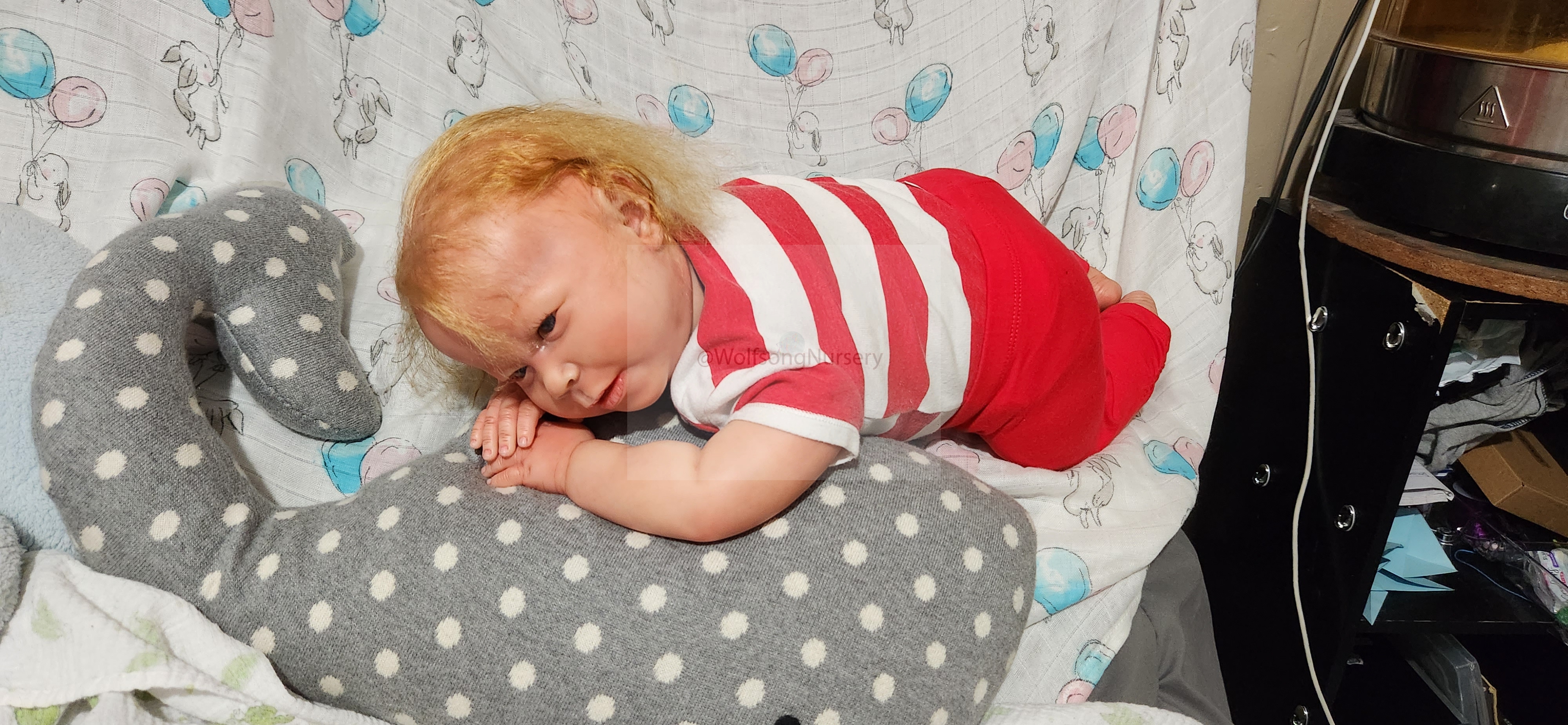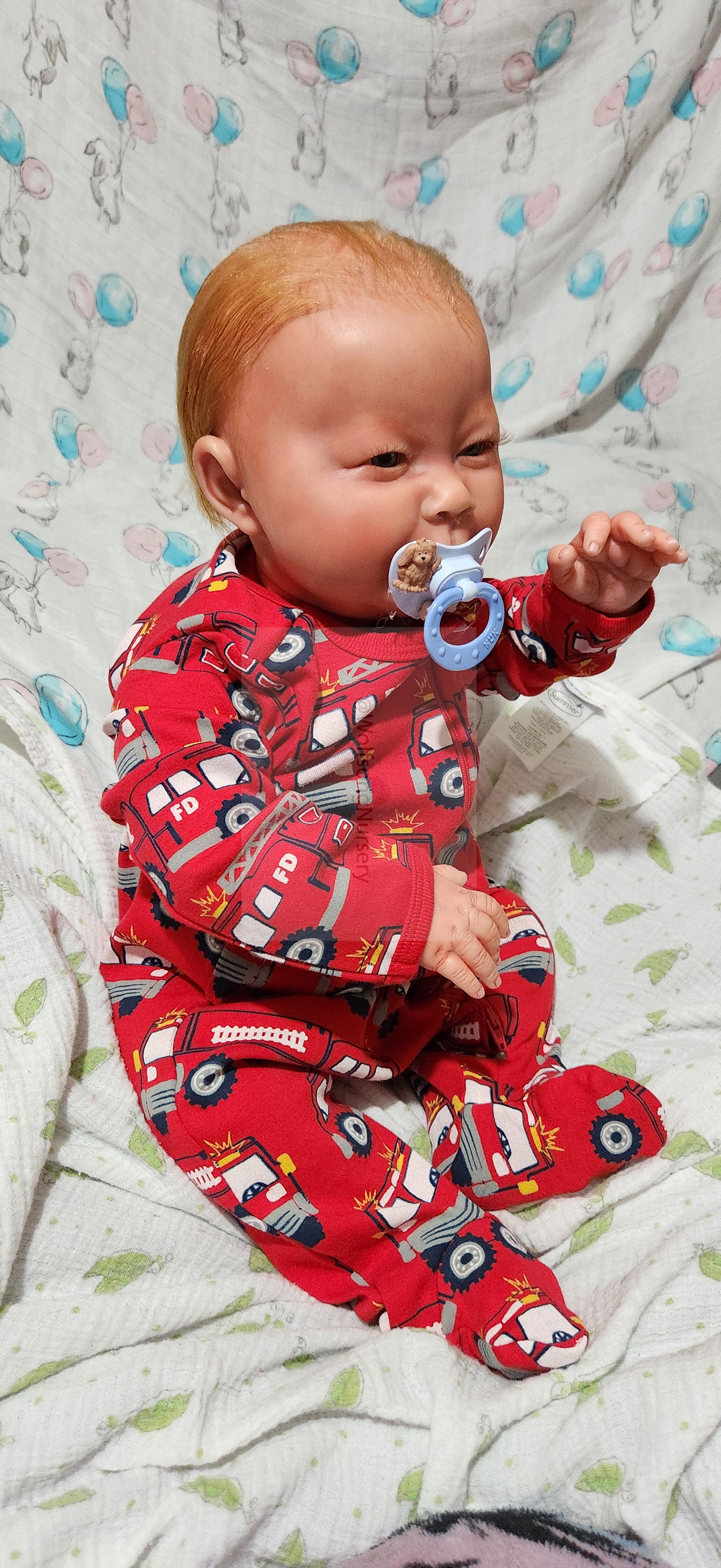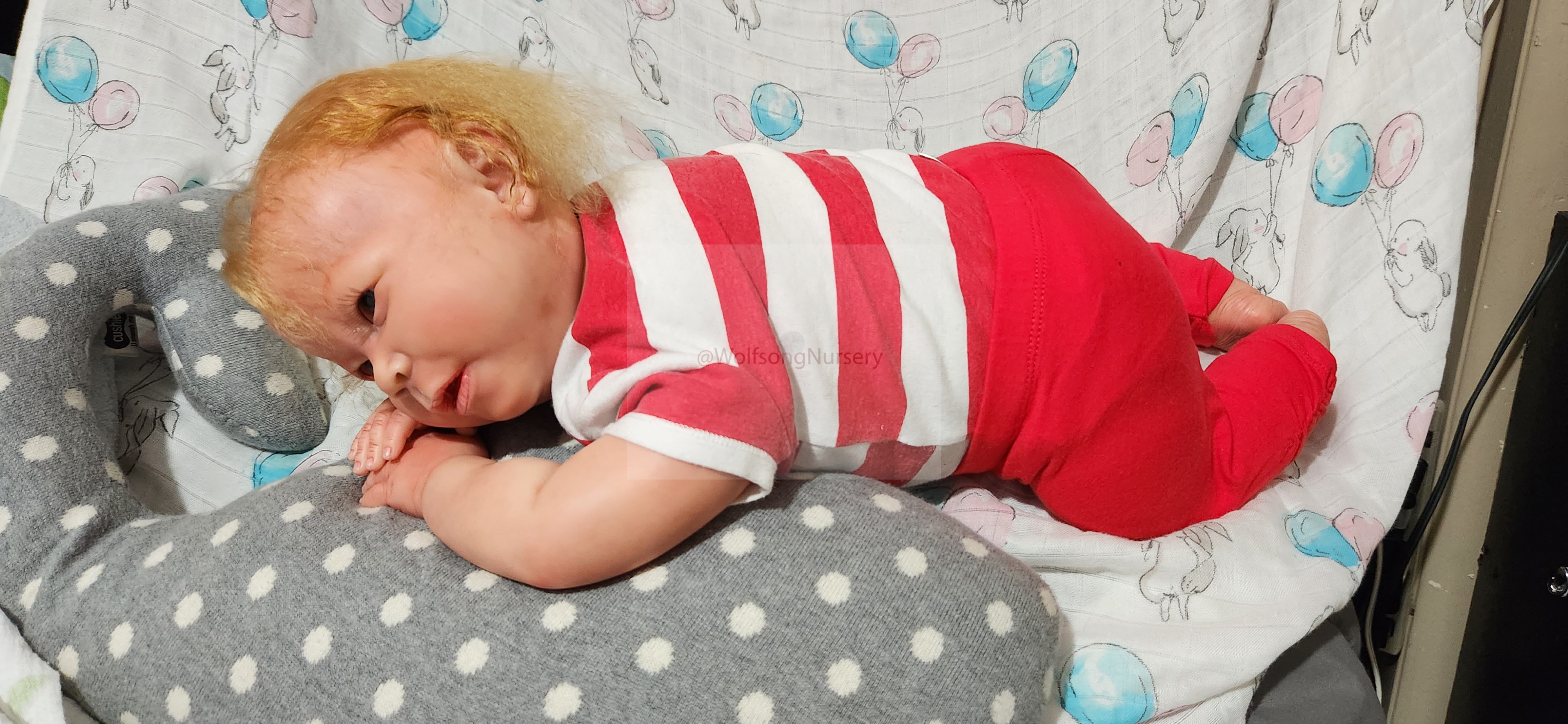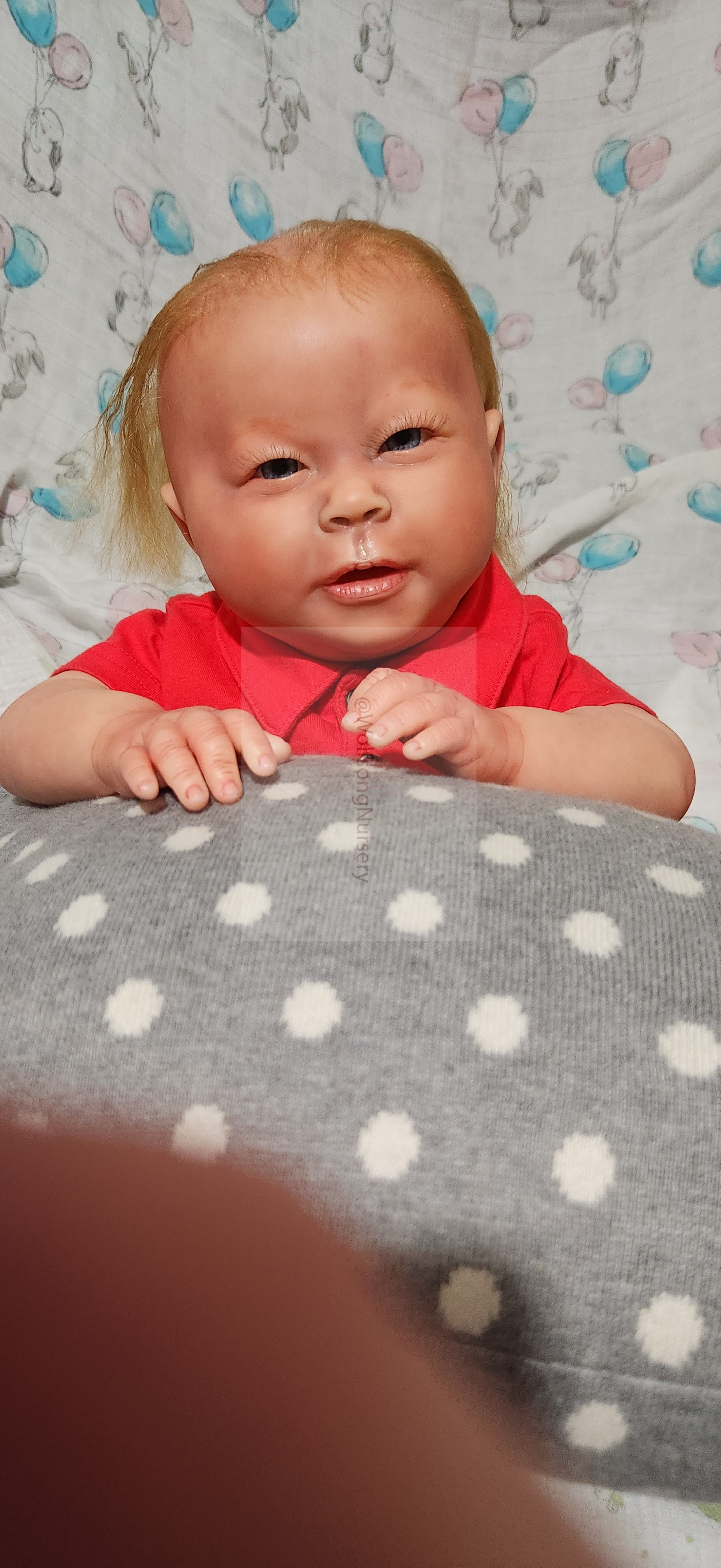 Samson Mark Miller was “born” March 25, 2023 at 4:20 Pm and he weighs 10 pounds 7 ounces at 23 inches long. He started with a Bountiful Baby Playfull Sage kit and was customized by Marta Towne of Wolfsong Nursery using Genesis Heat Set Paints, Pan Pastel and Coastal Scents Powders and using silicone pads in his tummy and bottom along with #3 glass beads, Poly pellets, 2 types of PolyFill (Super Soft and Regular) and he, like all my babies, takes one of my hearts with him to his Mommy, Denise Miller.