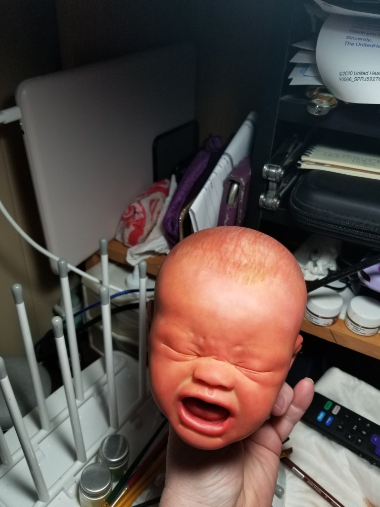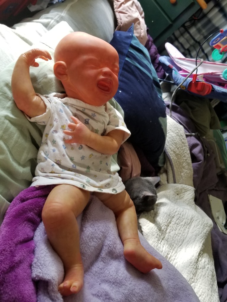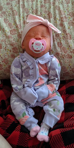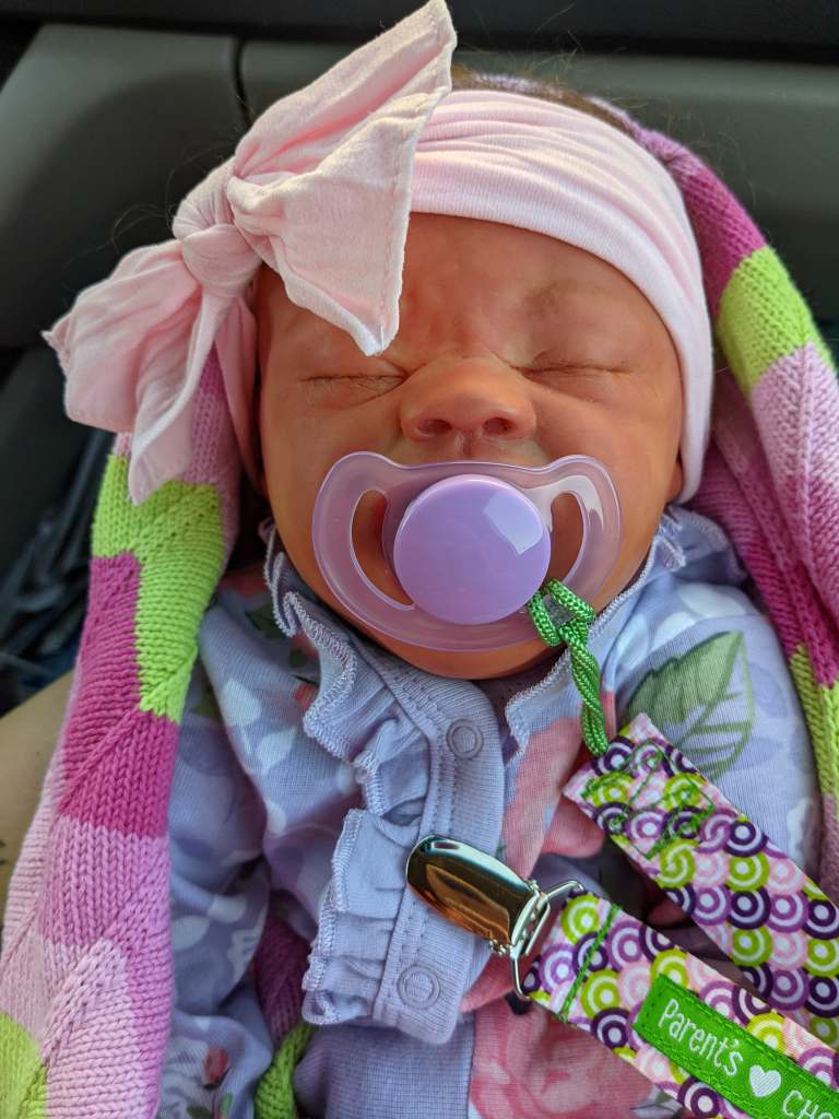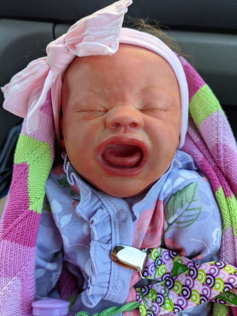 Quinn was the second baby I made. She was “born” April 25, 2021 at 11:22 am and weighed 5lbs 2.6oz. She was made by me from the Bountiful Baby Quinten Kit.